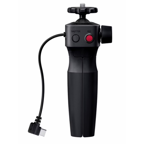 操作性に優れたトライポッドグリップは、動画記録ボタン、静止画シャッターボタン、スリープボタンを搭載。快適なVlog撮影をサポートします。またミニ三脚として、自撮りシーンでも活用できます。