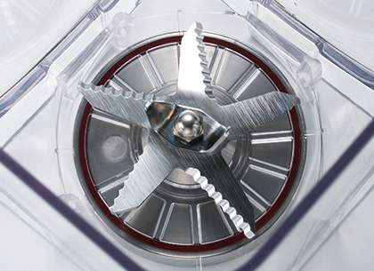 これによってカッターに食材が触れる回数が増え、効率よい粉砕と対流が起こり、短時間で処理することができます。