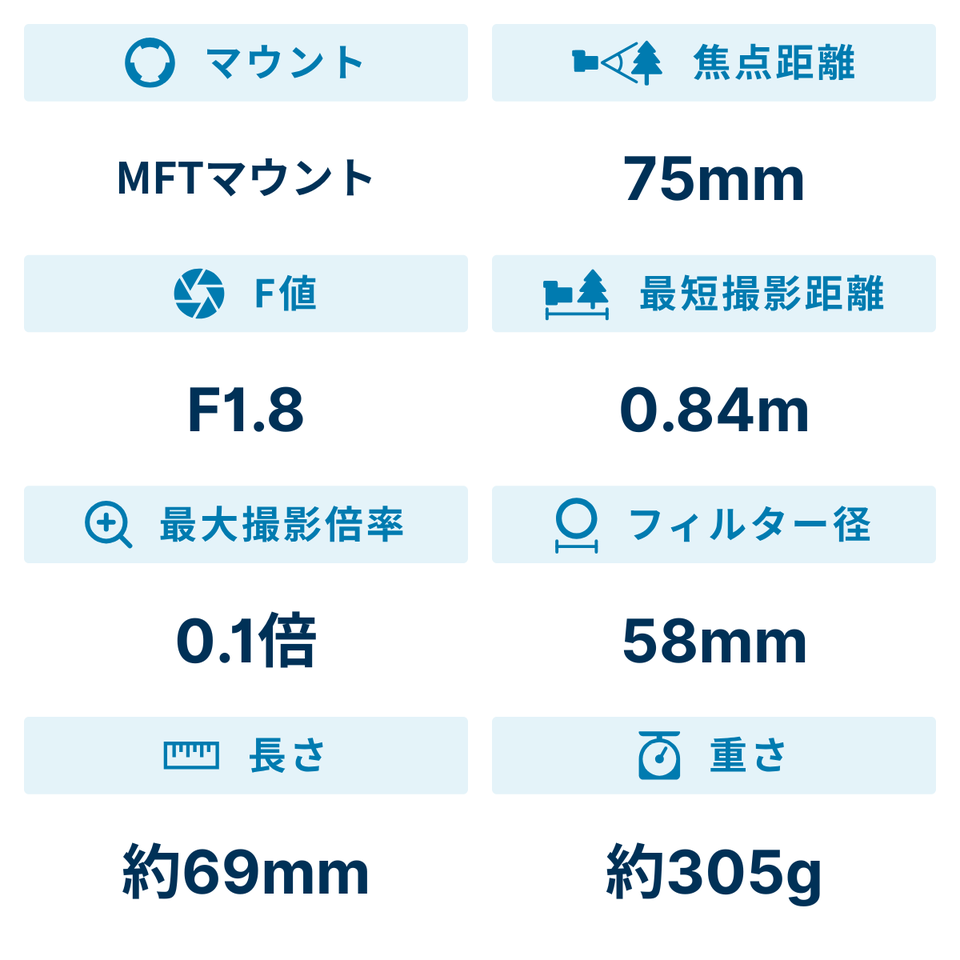 ポートレート撮影をはじめ、スタジオ撮影、舞台、屋内スポーツの撮影などに最適な焦点距離150mm相当(35mm判換算)の単焦点望遠レンズです。合理的なレンズ設計により、大口径F1.8の開放からシャープでヌケのよい描写力を発揮します。レンズ表面には反射防止コーディング“ZEROコーティング”を施すことで、ゴーストやフレアの発生を極限まで低減させました。静止画も動画もスムーズに撮影できる、高速&静音のオートフォーカス“MSC機構”を搭載しています。