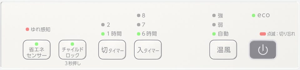1時間後・2時間後を設定できます。就寝時などに切り忘れの心配がなく安心してお使いいただけます。