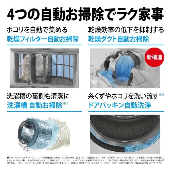洗濯機におまかせできるお手入れは、自動でかしこく。