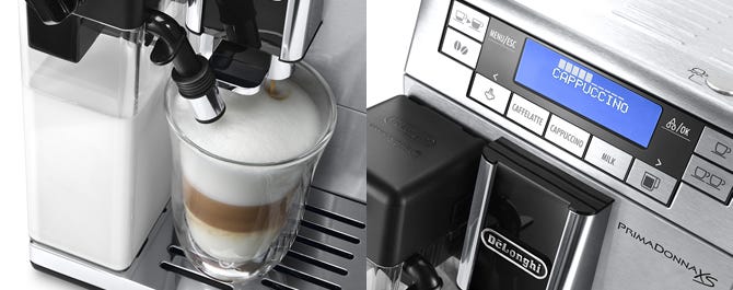 デロンギのコーヒーマシン史上最もきめ細かく最も舌触りなめらかな泡が作るミルクが甘い完全カプチーノ「ラテクレマ™システム」搭載。きめ細かいミルクの本格カプチーノが自宅で簡単に実現します。