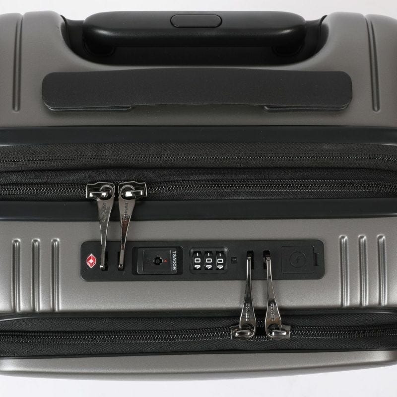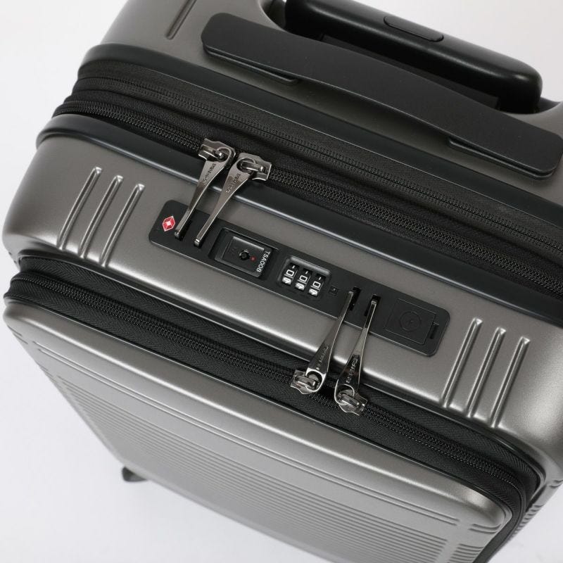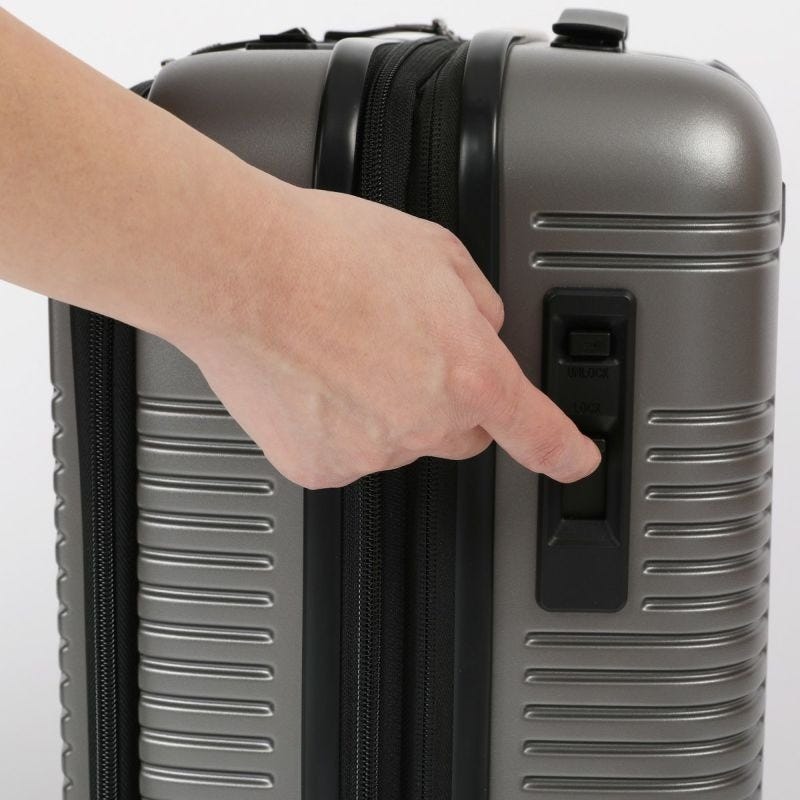 フロントパネルとメインルームを集中施錠可能なツインロックで便利に使用できます。 TSロックはダイヤルロック式を採用しています。 この錠前には鍵は付属しておりません。錠前にある鍵穴は空港の検査官が使用するものでお客様がご利用いただくものではありません。 ※番号の初期設定は0-0-0になっています。