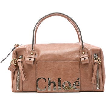 レディース クロエ 型押しPVC ビッグロゴ ハンドバッグ ベージュ
