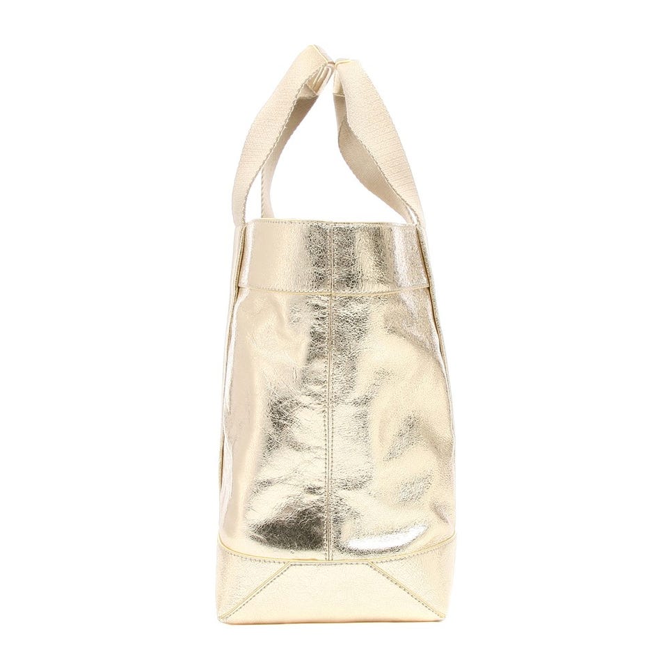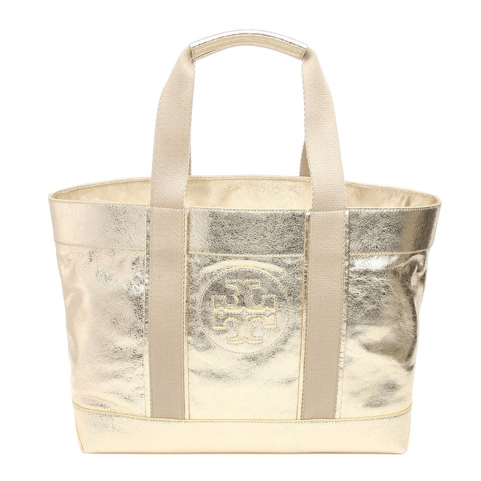 コーディネートに華やかさを添えるメタリックレザーのトートバッグは、「TORY BURCH」春夏モデル!荷物がたくさん入る大きなサイズなので、デイリーからレジャーまで、幅広いシーンで活躍してくれます。
