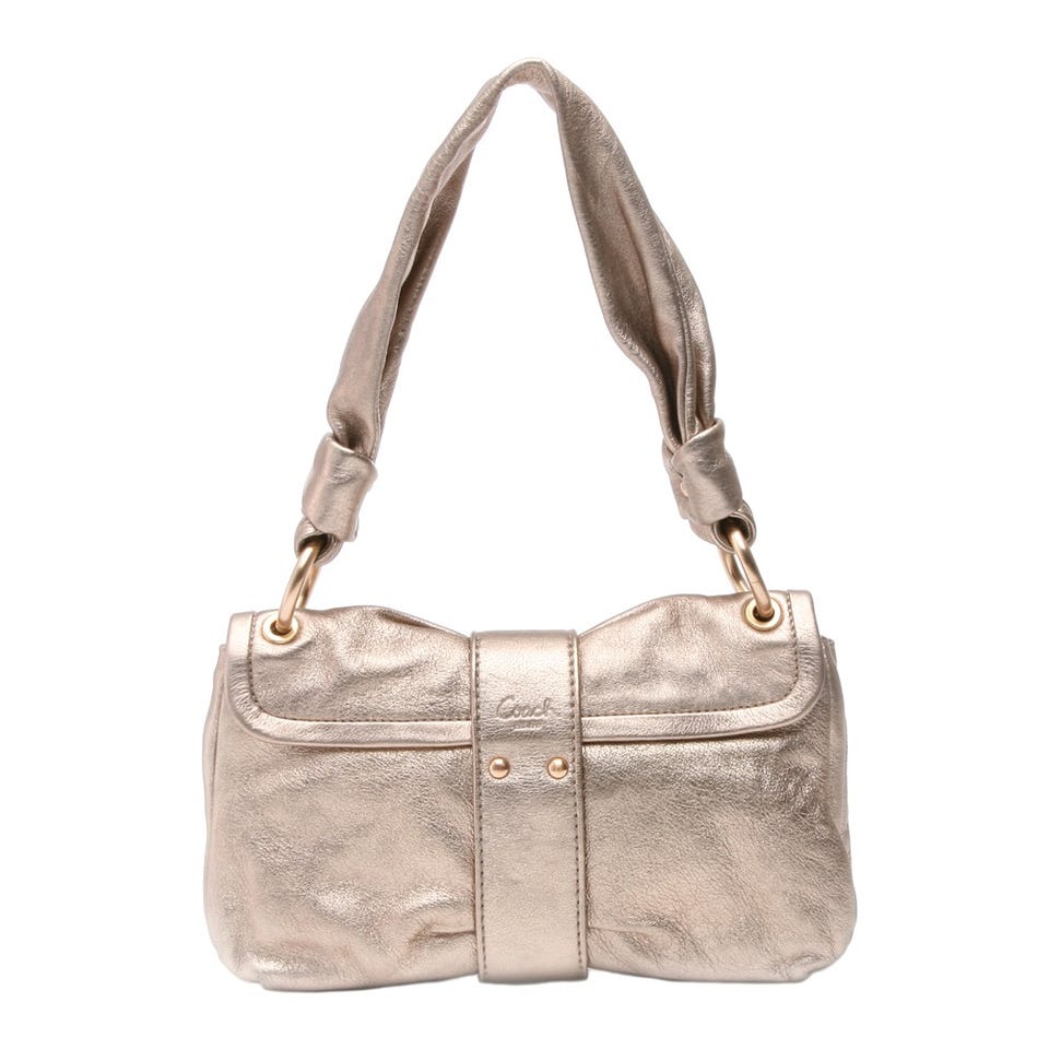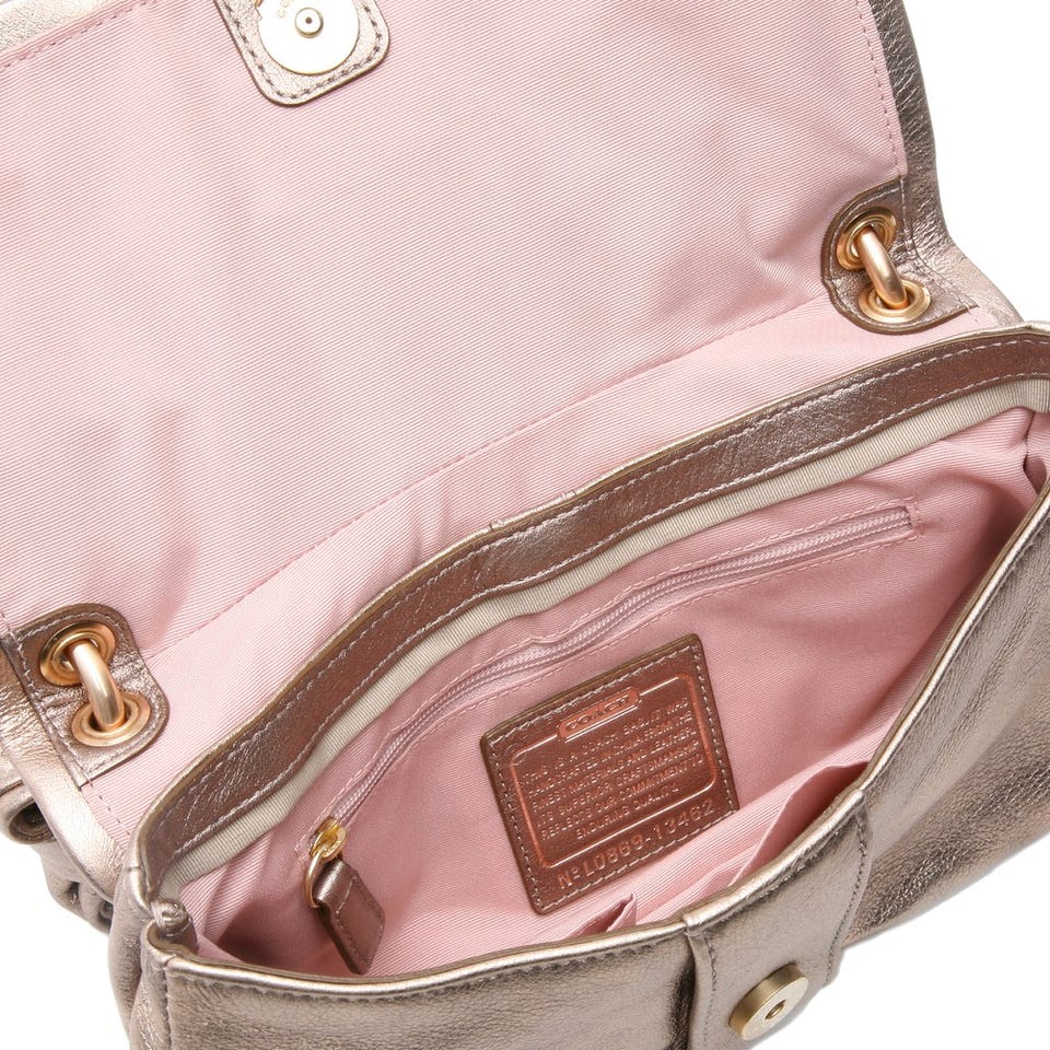 メタリックレザーを用いた「COACH」のショルダーバッグは、華やかさ満点のルックスなのでパーティシーンにもぴったり。リボンをイメージさせるフラップもキュート!コーディネートのワンポイントとして活躍させて。