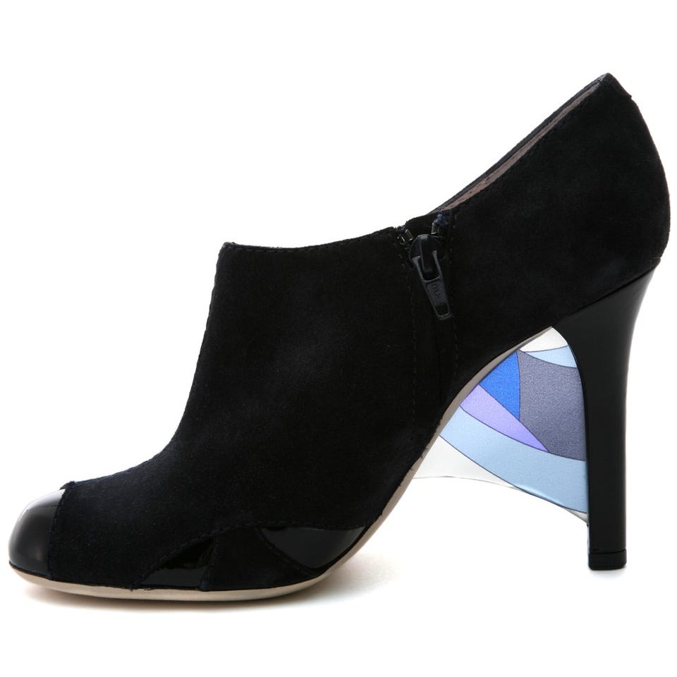 どこから見られても抜け目ないルックスのブーティー。ヒールがつくる空間にデザインした「EMILIO PUCCI」オリジナル柄のソールが斬新!サイドにファスナーが付いているので着脱が簡単です。