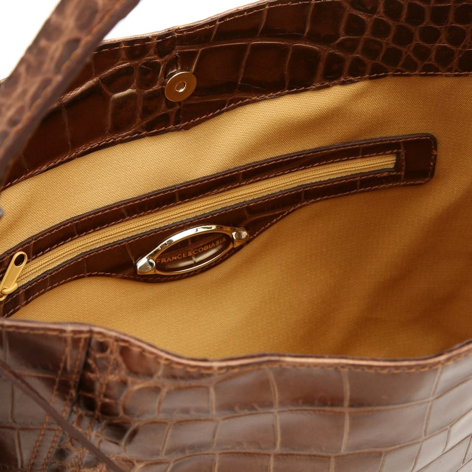 「FRANCESCO BIASIA」のショルダーバッグ。クロコの型押しレザーなのでリッチなムードもたっぷり!内側には仕切りポケットがあり、中身を上手に整理できます。