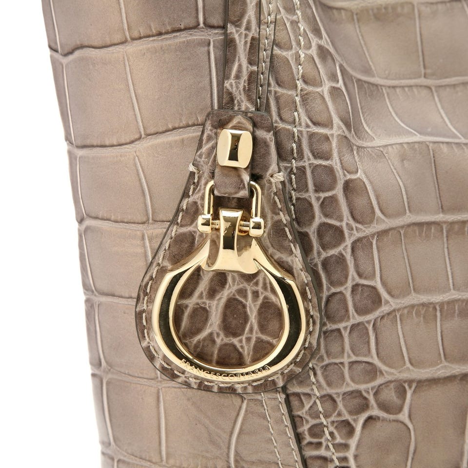 パール感のあるカラーが美しい「FRANCESCO BIASIA」のショルダーバッグ。クロコの型押しレザーなのでリッチなムードもたっぷり!内側にはファスナー付きのポケットがあり、小物の収納に役立ちます。