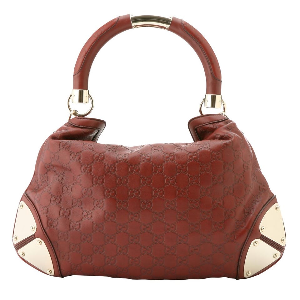 レディース グッチ バンブーショルダーバッグ シマレザー ブラウン