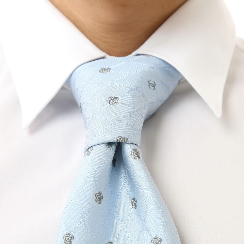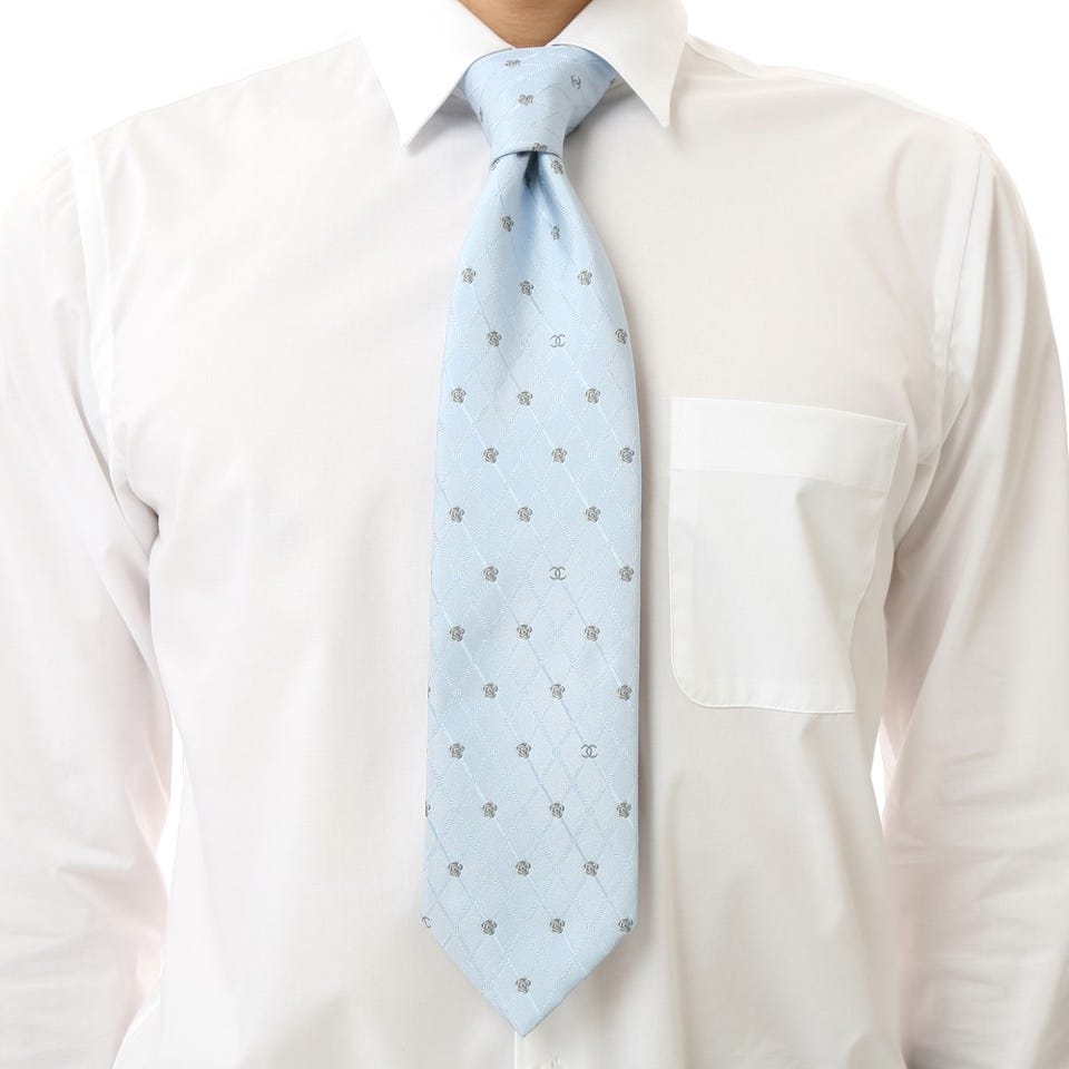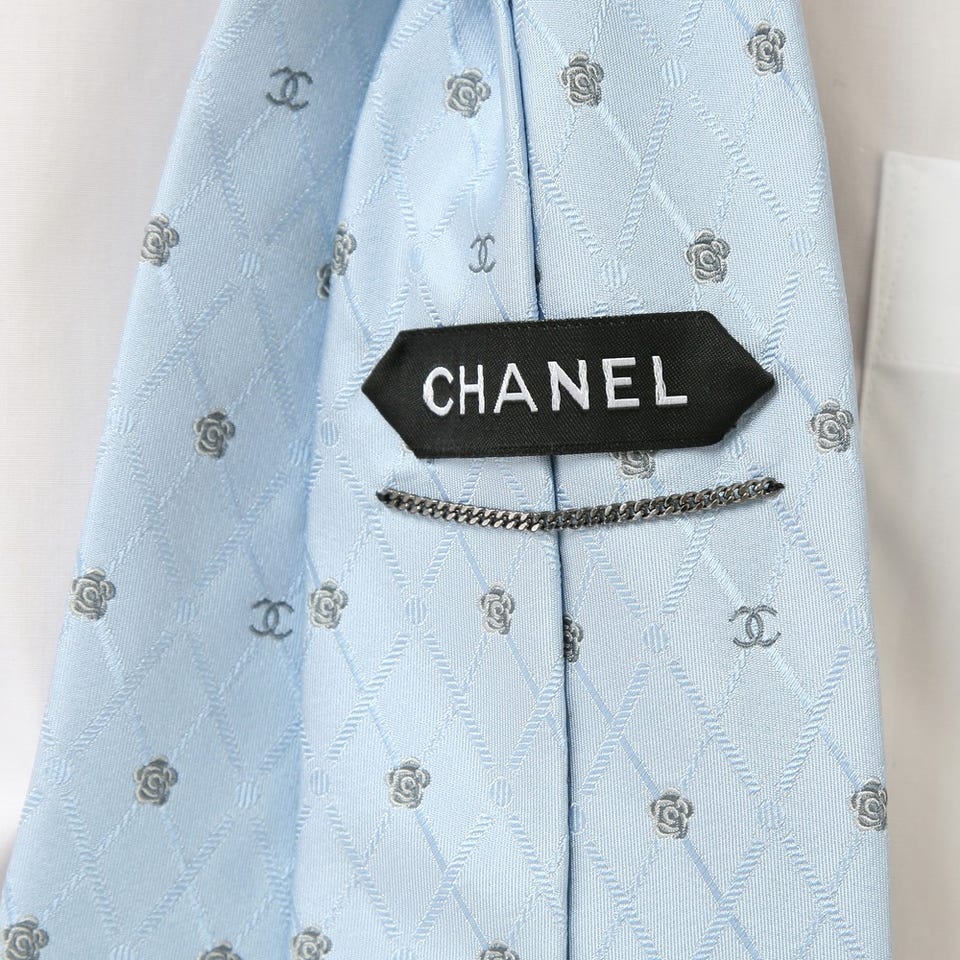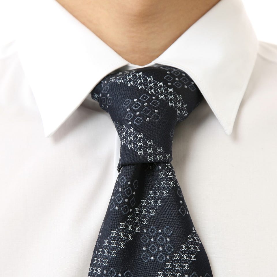 ちょっぴり個性的な「CHANEL」のネクタイ。スーツスタイルを引き締めるアクセントとして活躍してくれます。シルク素材なので、襟元にしなやかにフィットします。