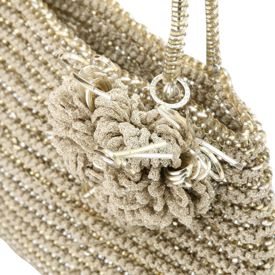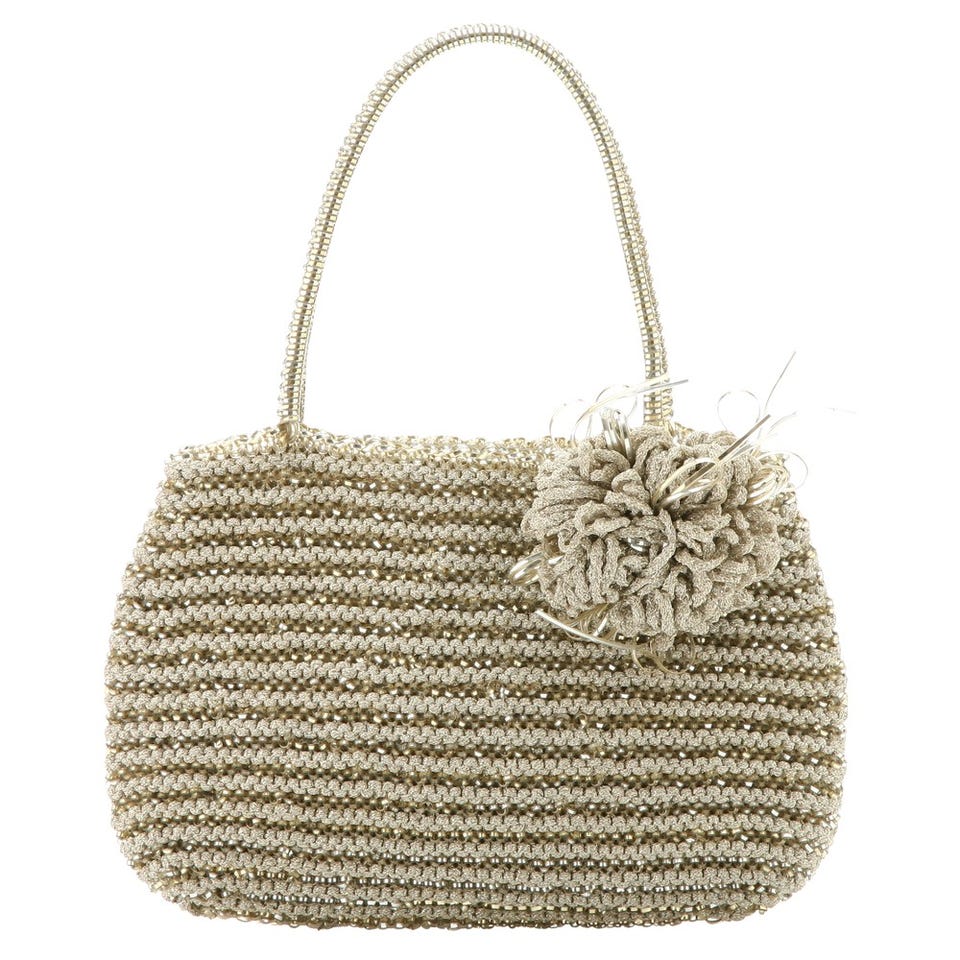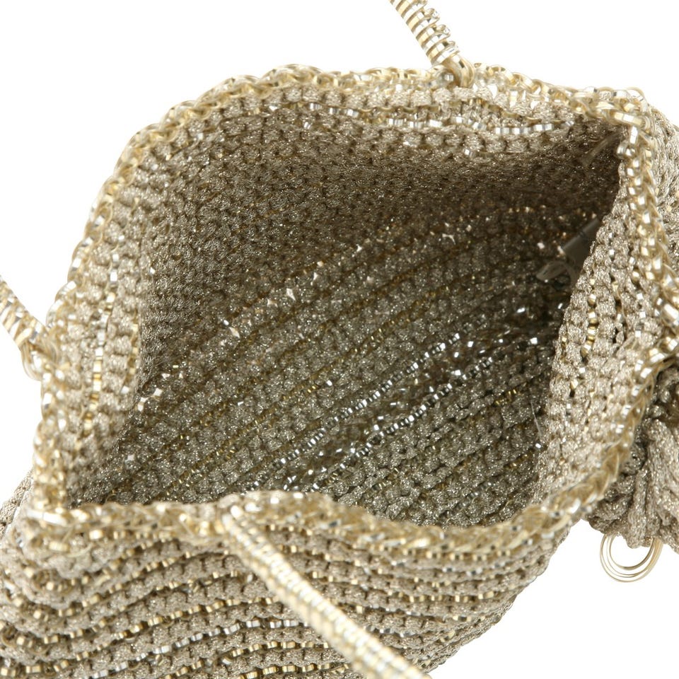 「ANTEPRIMA」のこちらのワイヤーバッグは、ルーレックスと呼ばれるラメ入りテープを編み込んだきらめき溢れるデザイン!同素材のコサージュがキュートなアクセントに。パーティーシーンで大活躍の予感。