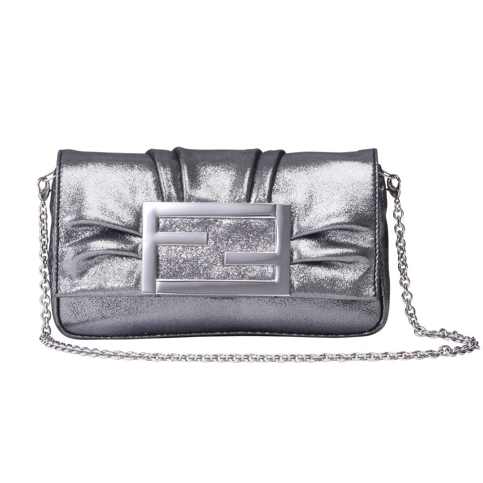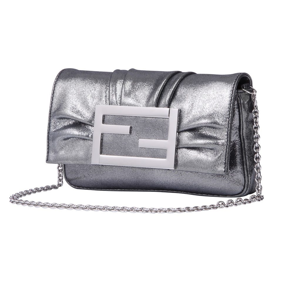 グリッターな素材が華やかな印象を与える「FENDI」のショルダーバッグ。FFロゴをモチーフにした大きなバックルがアクセント!チェーンを外してクラッチバッグとしても使える2WAY仕様です。