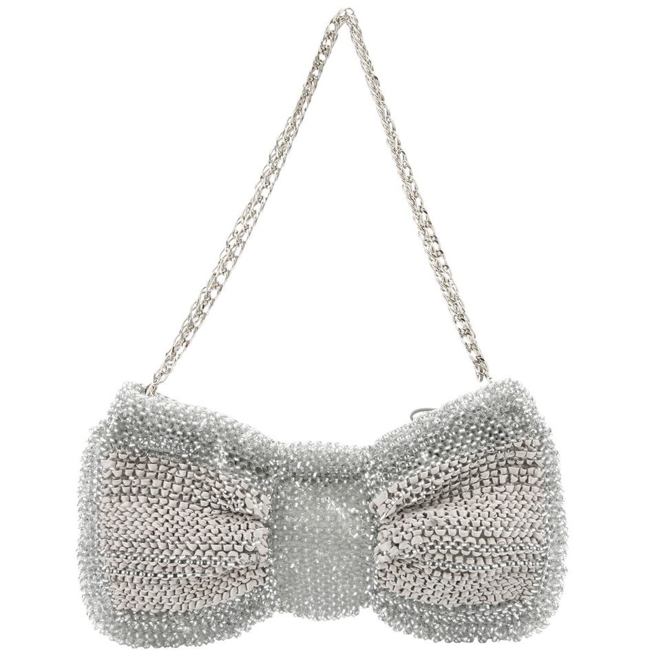 レディース アンテプリマ リボン型バッグ ビーズ ハンドバッグ シルバー