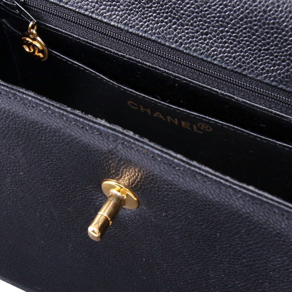 レディース シャネル ワンショルダー キャビアスキン ショルダーバッグ ブラック