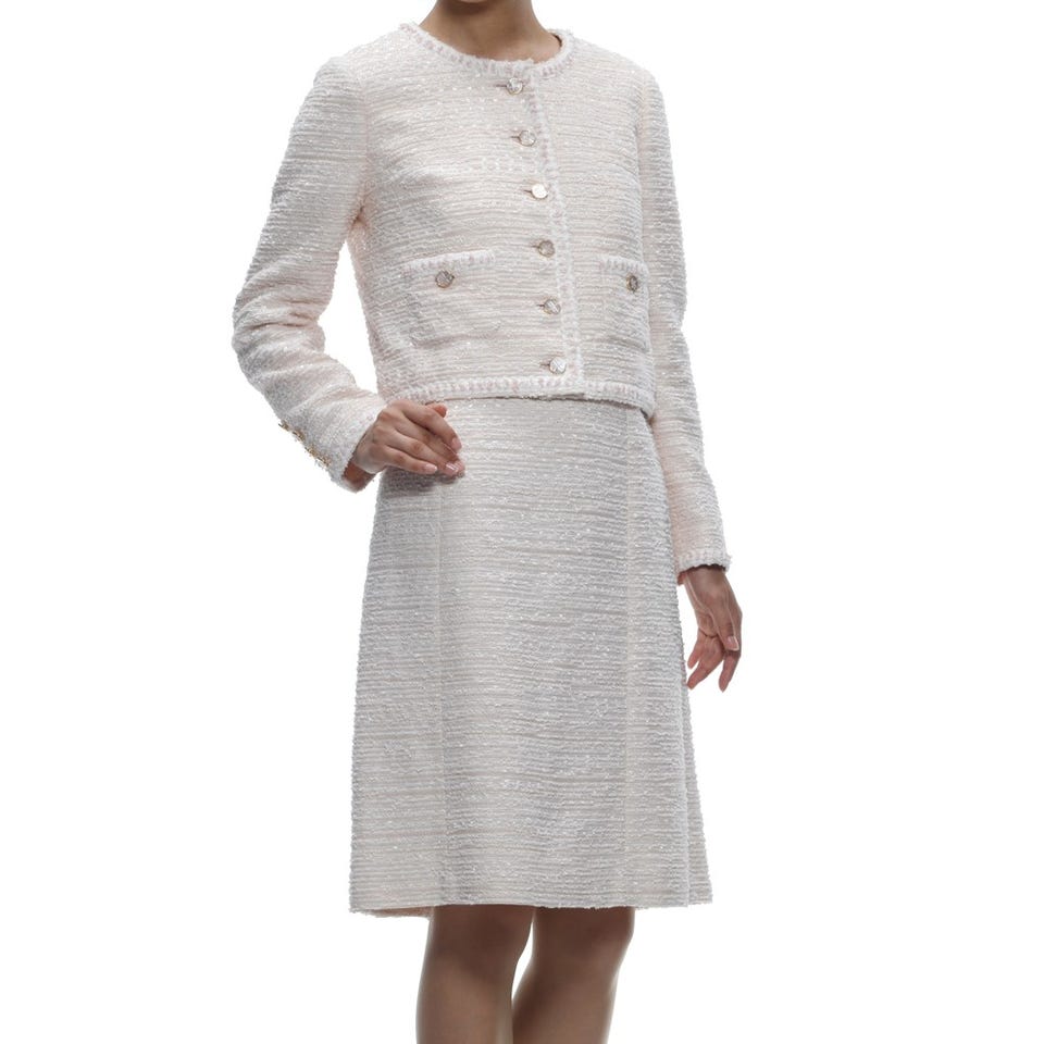 セレブご用達ブランド「Harrods」のスーツです。シンプルなテーラードカラーのジャケットは、幅広いシーンに大活躍!半袖のワンピースは、ボディラインに沿うようなカッティングが女性らしい印象を与えます。