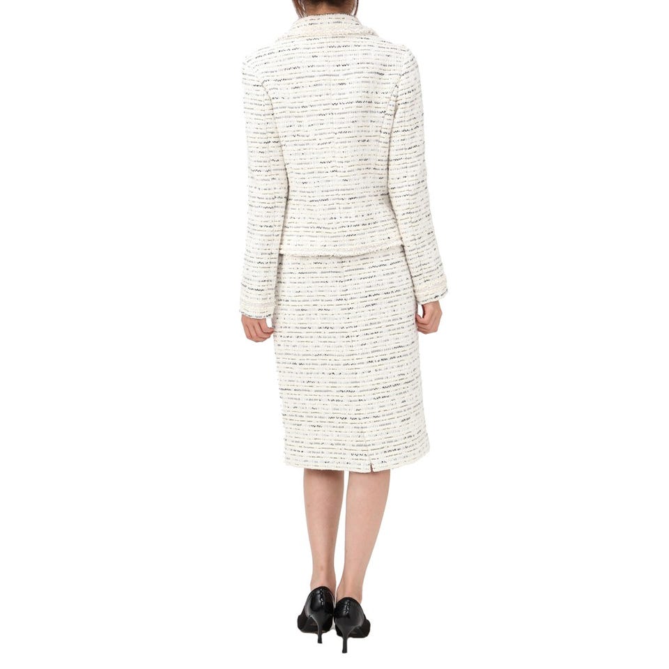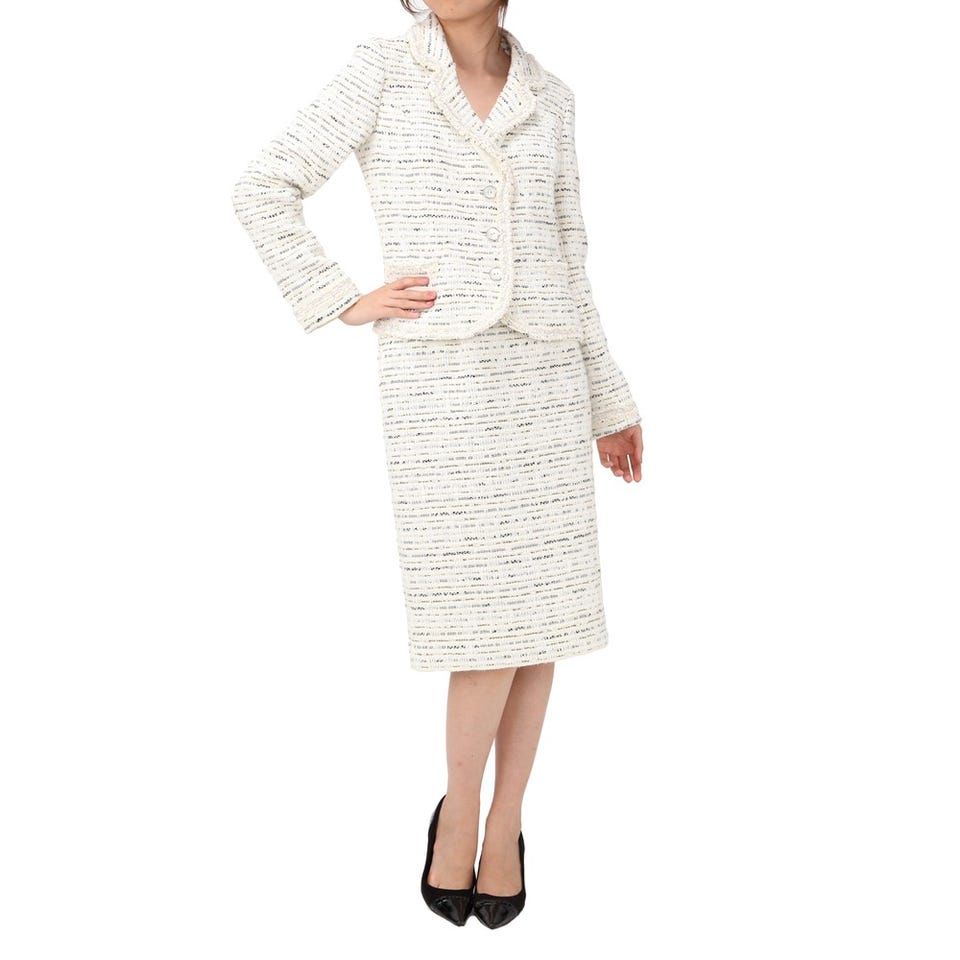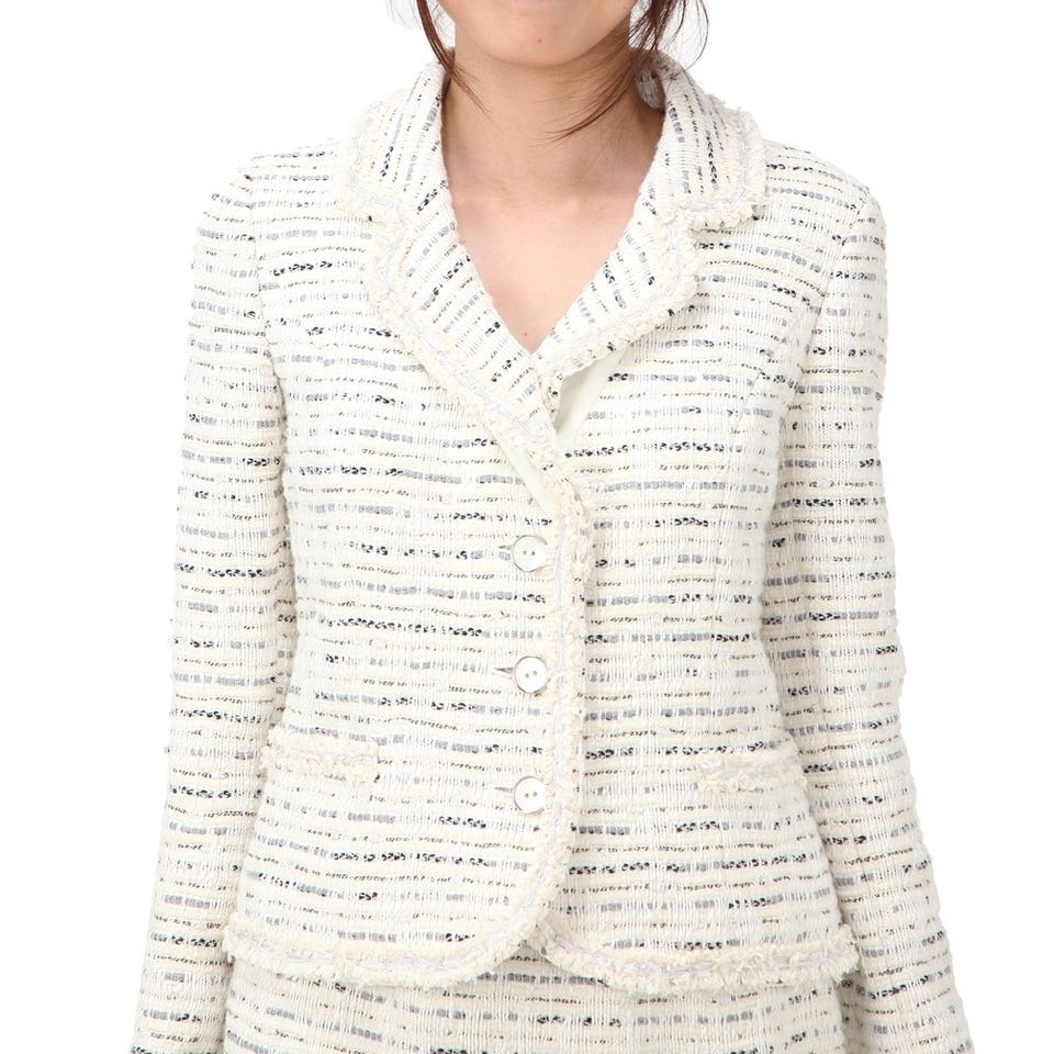 セレブご用達ブランド「Harrods」のスーツです。手の込んだテキスタイルがエレガントに装えるポイント。入学&卒業式やパーティーなど、春夏シーズンのイベントにおすすめです。