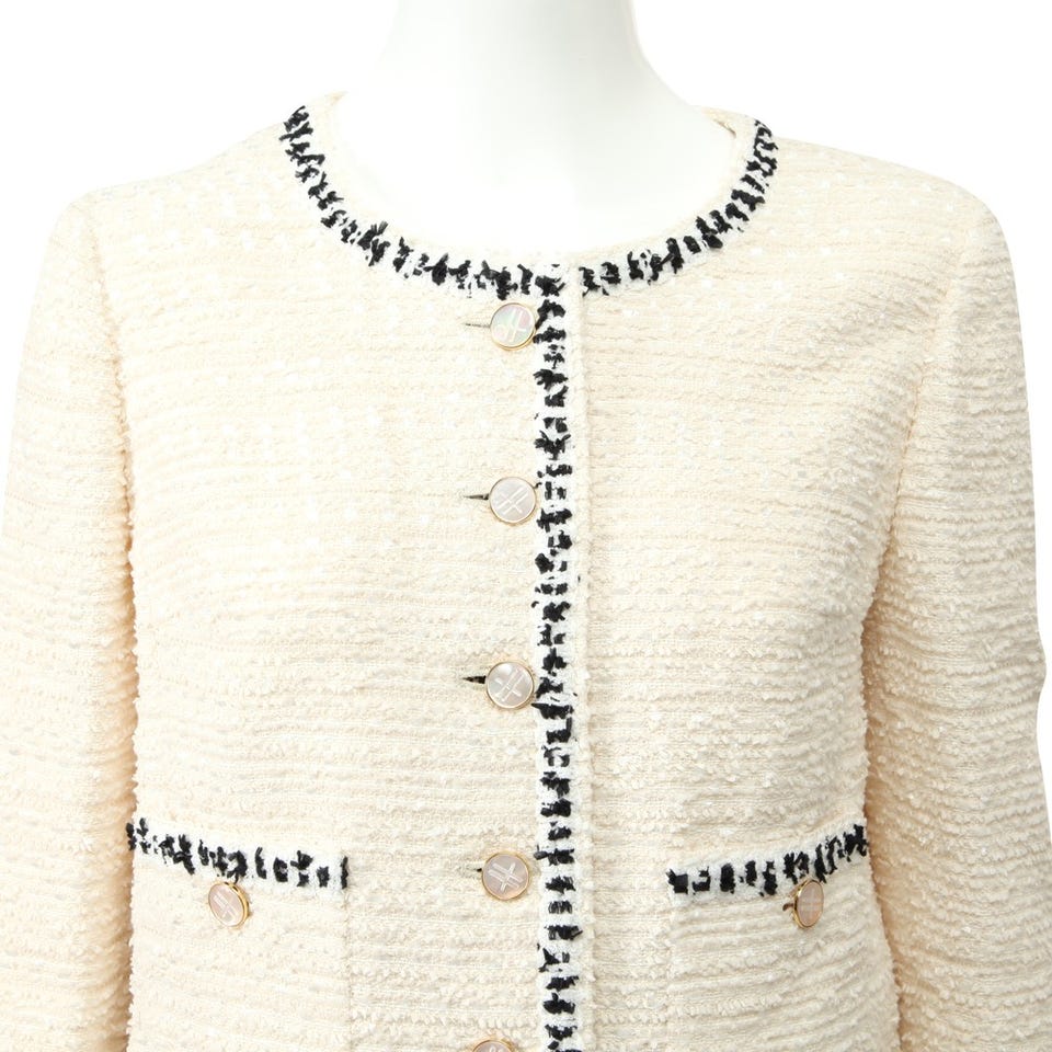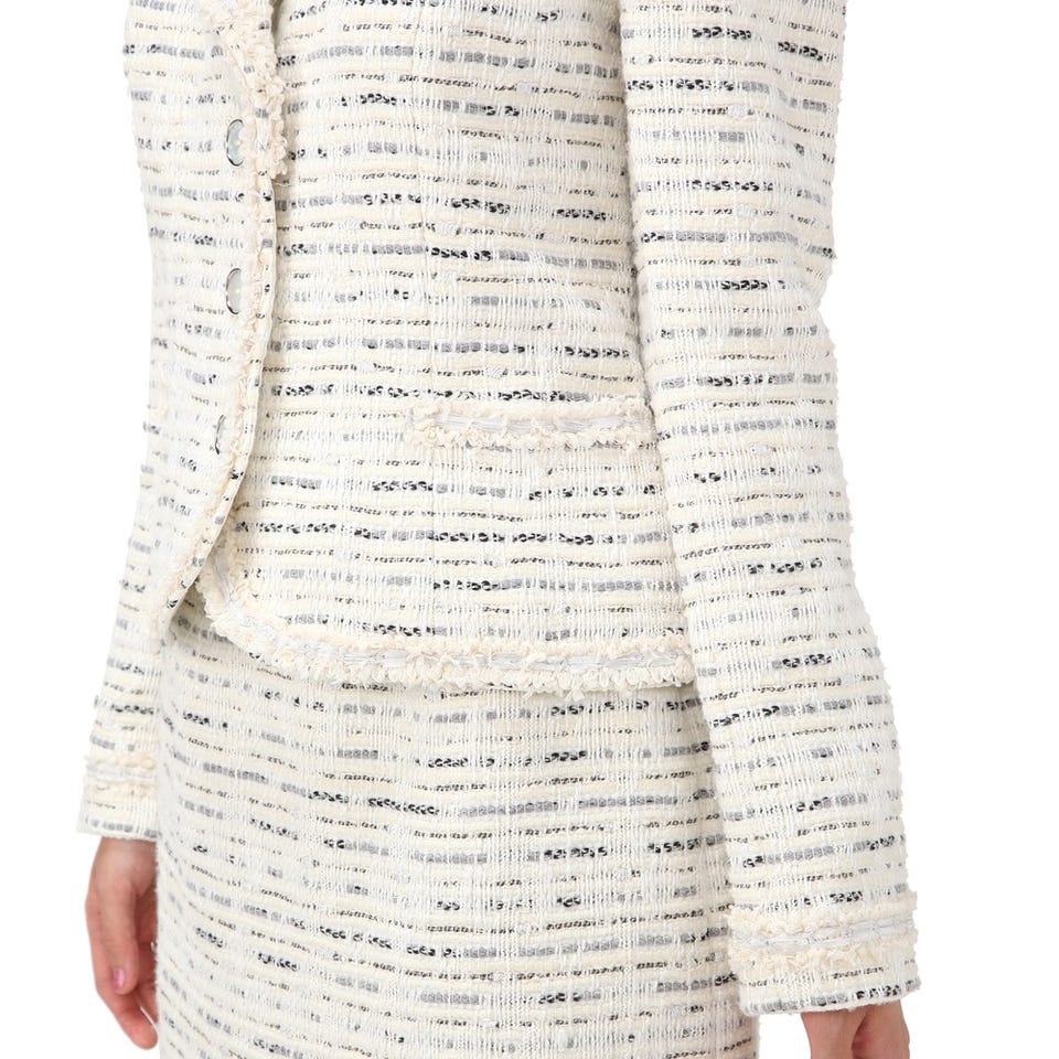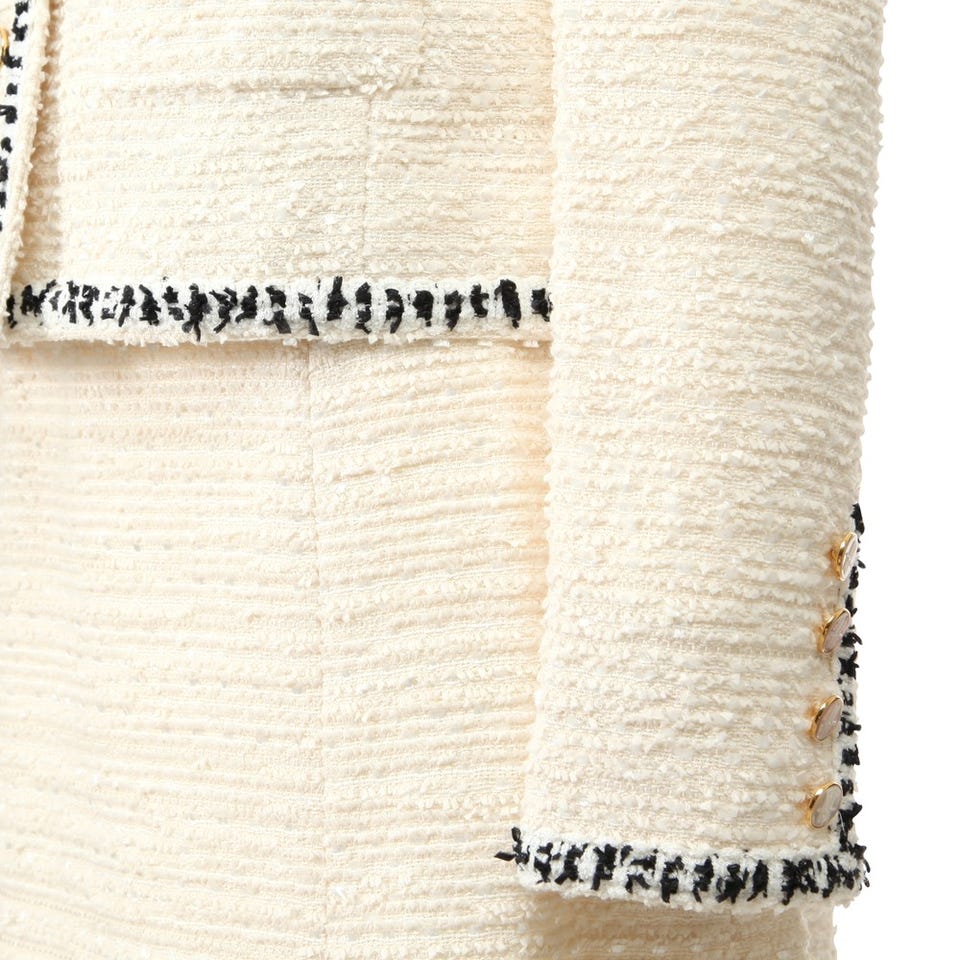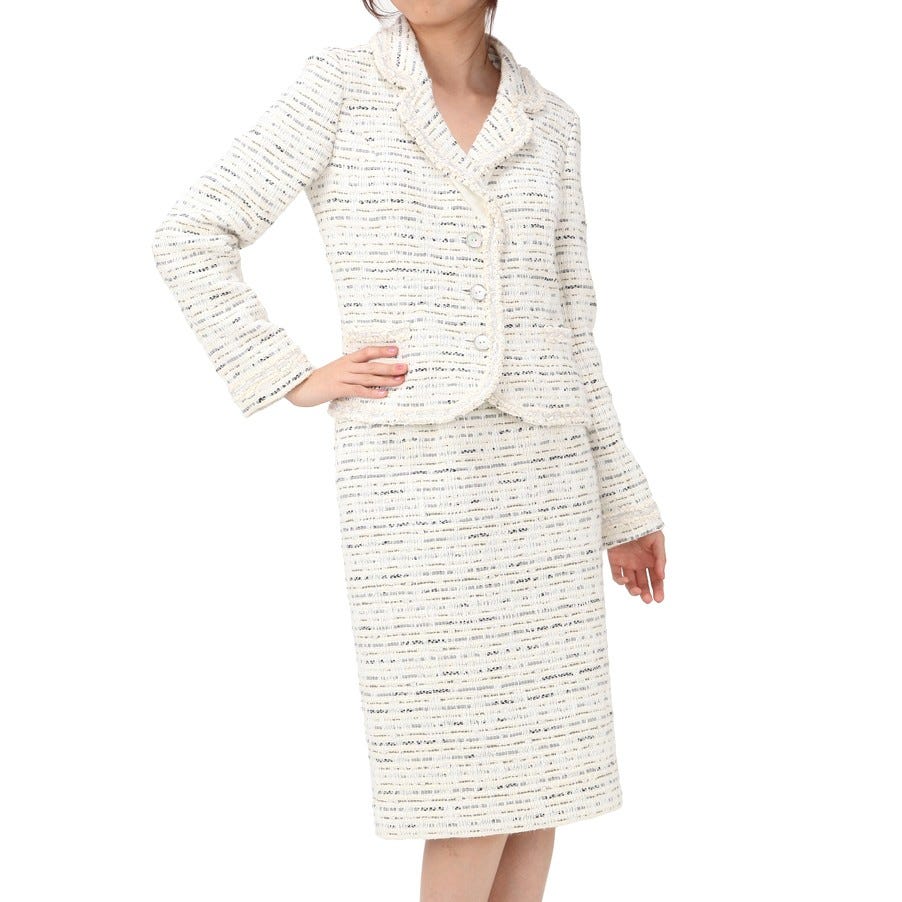 セレブご用達ブランド「Harrods」のスーツです。手の込んだテキスタイルがエレガントに装えるポイント。入学&卒業式やパーティーなど、春夏シーズンのイベントにおすすめです。