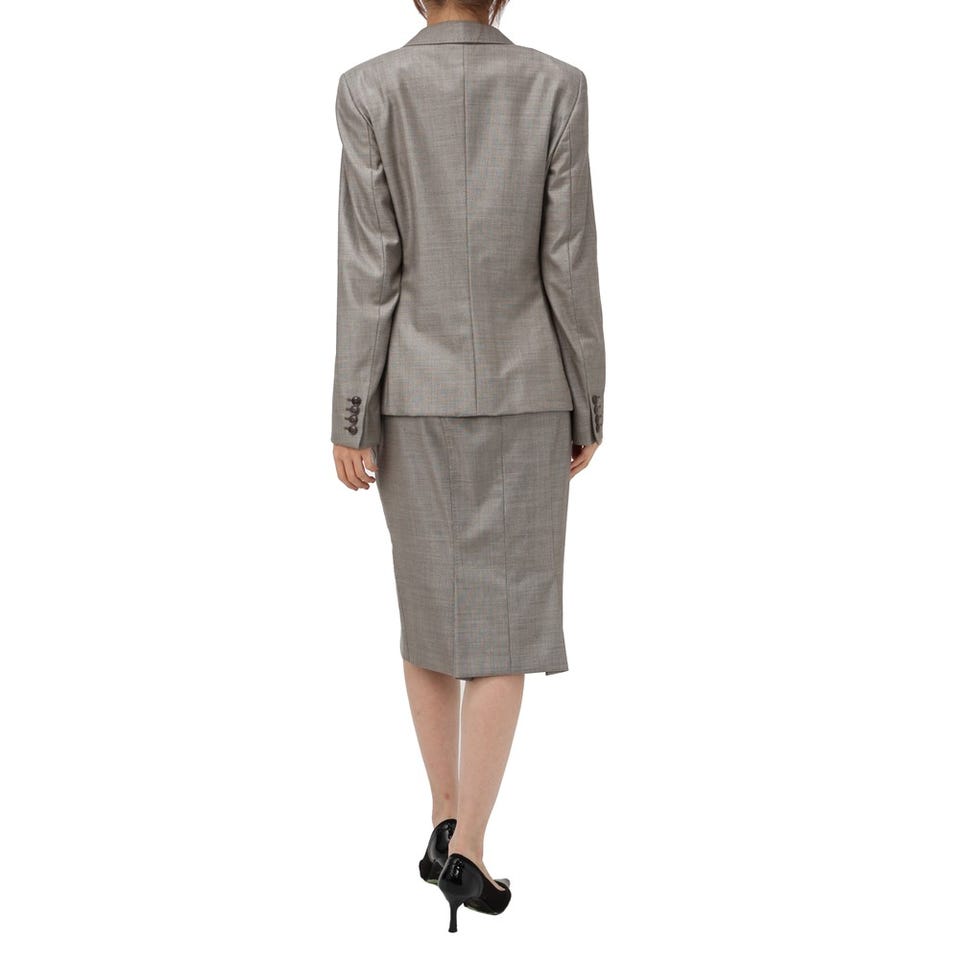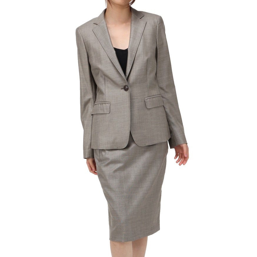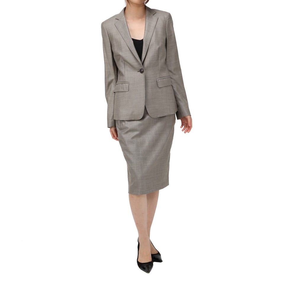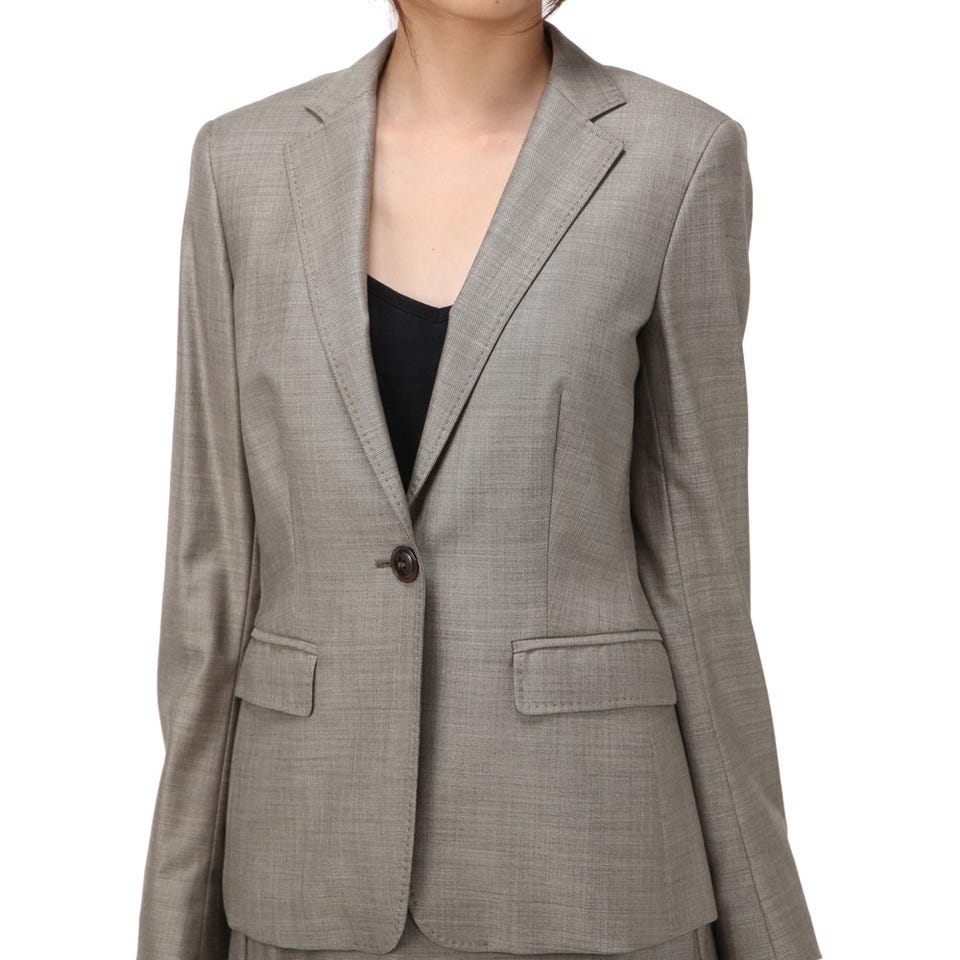 オフィスシーンから結婚式まで、さまざまなオケージョンに対応できる、「Max Mara」のベーシックなスーツ。随所に施されたハンドステッチがさりげないポイント。ストレッチが効いている素材なので、動きやすさも抜群です。