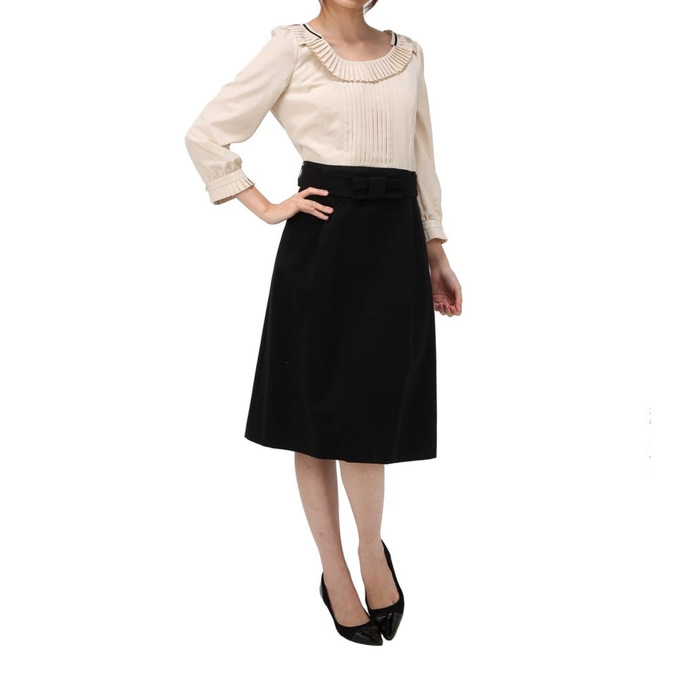 フェミニンムード満点な「TO BE CHIC」のスーツ。ジャケットはフリルやリボンが愛らしいアクセント。ワンピースは、まるでブラウスとスカートのコーディネートのよう。プリーツを施した襟&袖口が女性らしい印象を与えます。