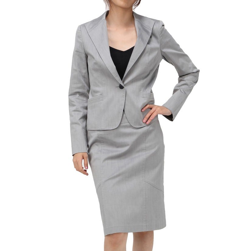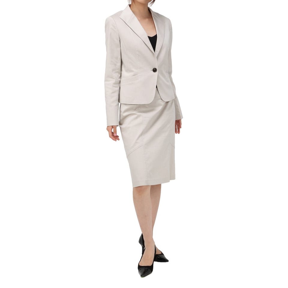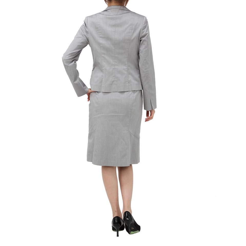 自由区 スカートスーツ グレー / ベージュ シルバー 9号
