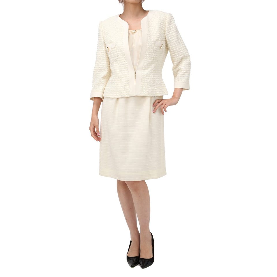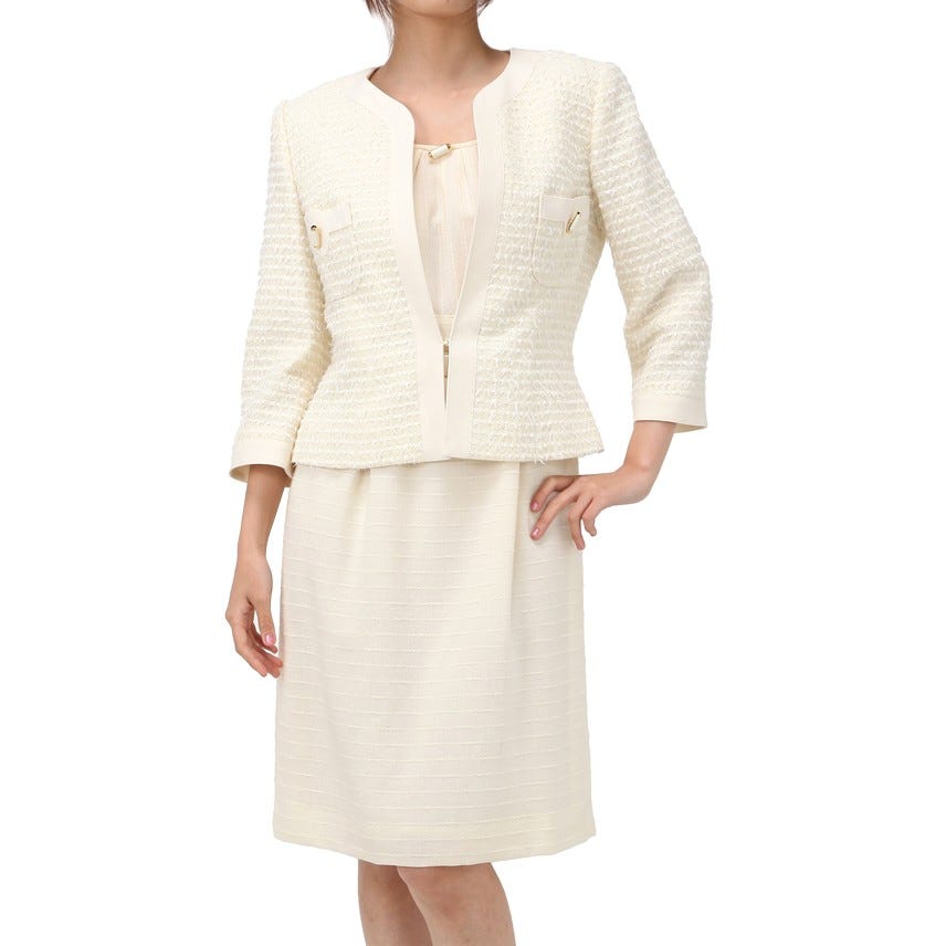ミス・アシダ セレモニースーツ2点セット(ジャケット+ワンピース) ホワイト ホワイト 9号