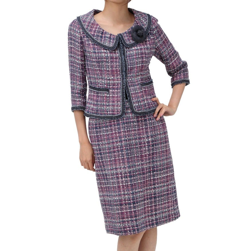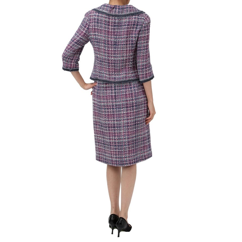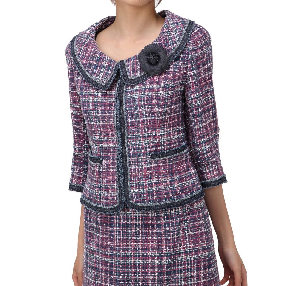 ルネ フェミニンチェック セレモニースーツ3点セット(ジャケット+スカート+コサージュ) パープルピンク ピンク 9号