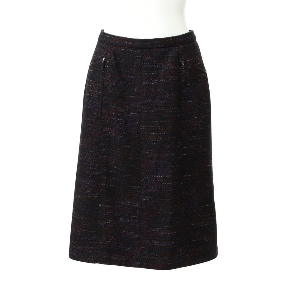 エレガントな「CHANEL」のスーツです。ジャケットは、ココマーク入りのボタンがポイント!タイトスカートで落ち着いた雰囲気にまとめています。