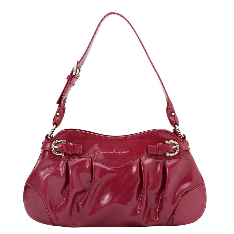 ベリーを思わせるジューシーなカラーが魅力的な「Salvatore Ferragamo」のショルダーバッグ。曲線的なラインで作り上げたフォルムも愛らしい。パーティーや結婚式など、華やかなシーンにもおすすめ。