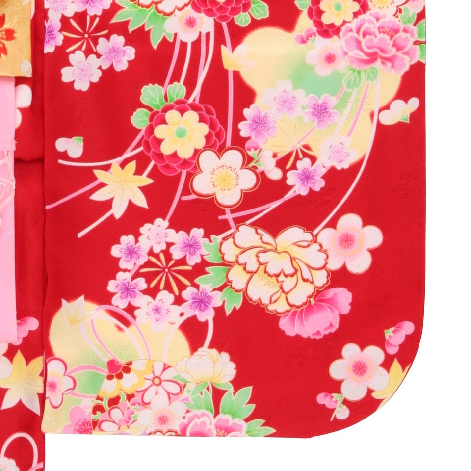 七五三/節句 着物セット 7歳女の子 満開牡丹 草花 レッド