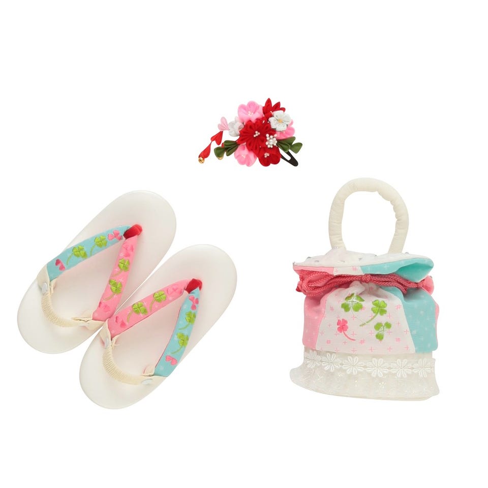 ・着物・長襦袢(半衿つき)・被布コート・兵児帯(しごき)・腰ひも2本・足袋・肌襦袢・髪飾り・巾着・草履(ストラップ取外し可)