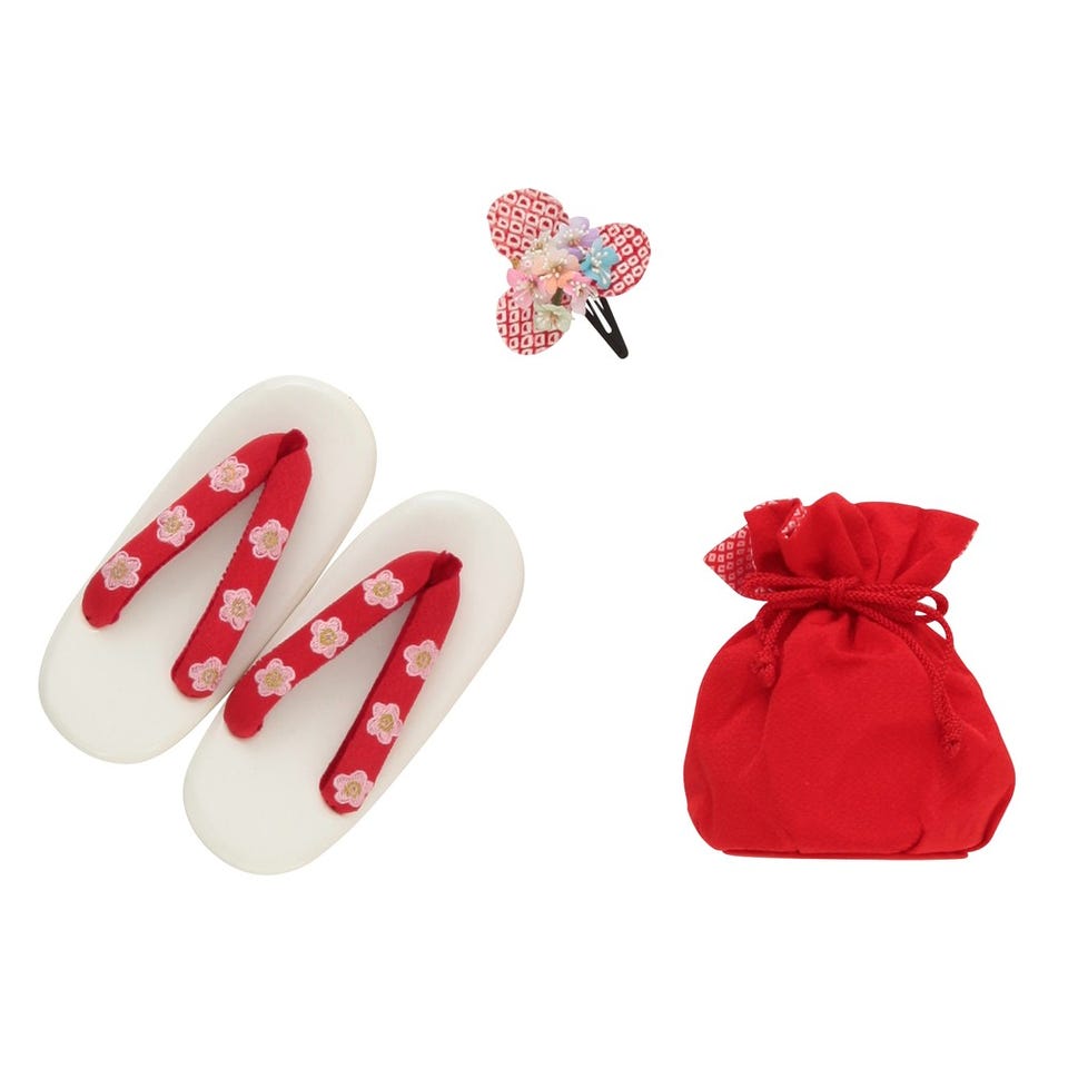 ・着物・長襦袢(半衿つき)・被布コート・兵児帯(しごき)・腰ひも2本・足袋・肌襦袢・髪飾り・巾着・草履