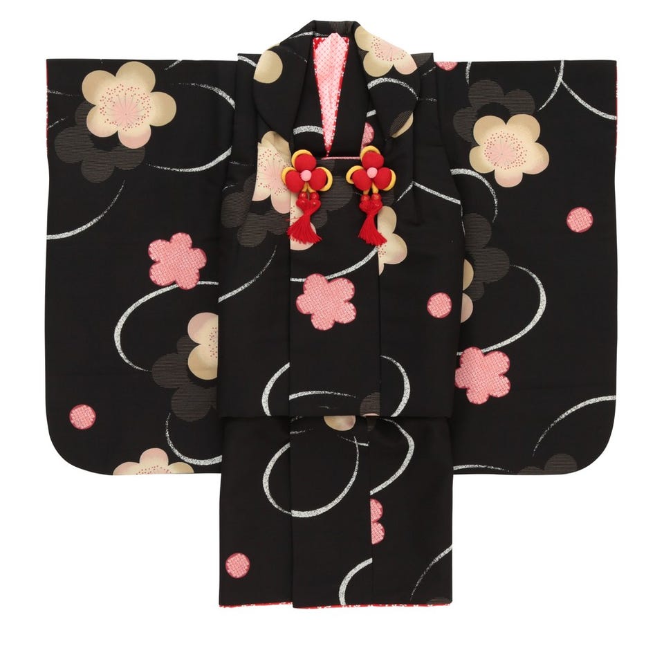 七五三/節句 被布セット 3歳女の子 しとやか 花びら ブラック