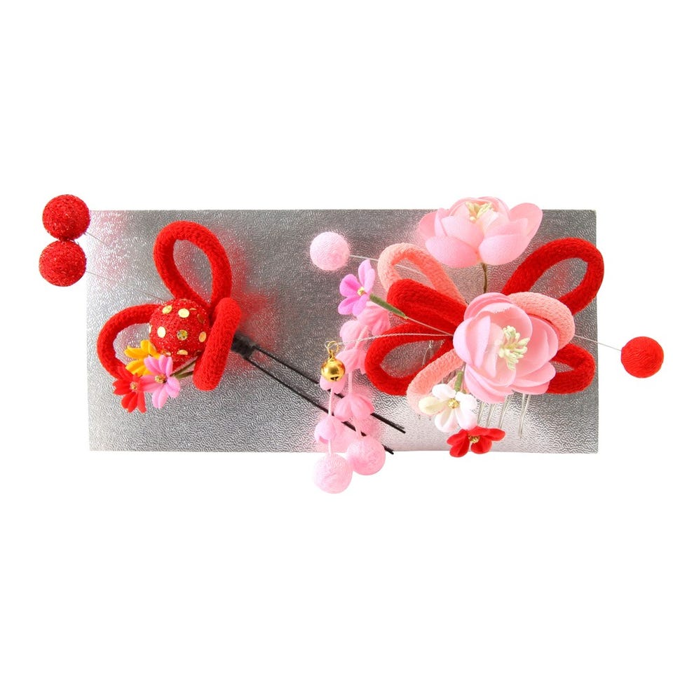 七五三/節句 被布セット 3歳女の子 巫女風 花々 レッド