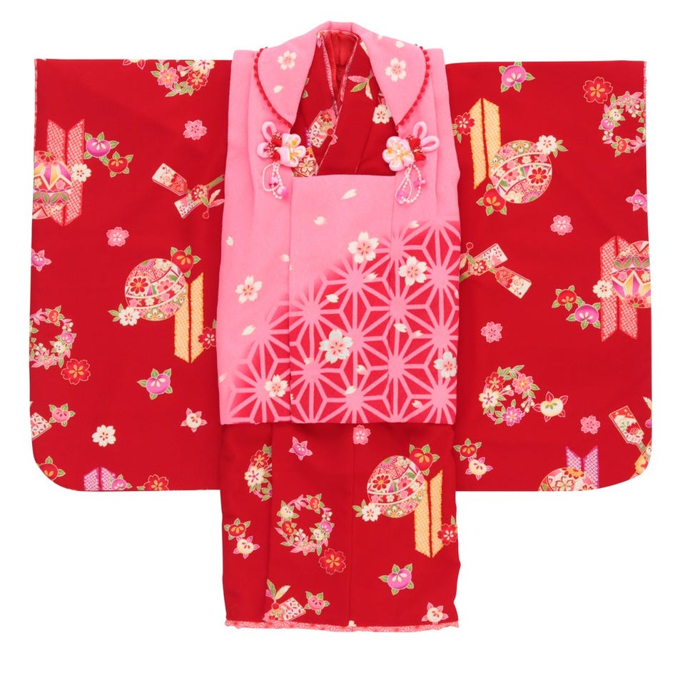 七五三/節句 被布セット 3歳女の子 被布セット 可愛らしい花柄 手鞠 レッド
