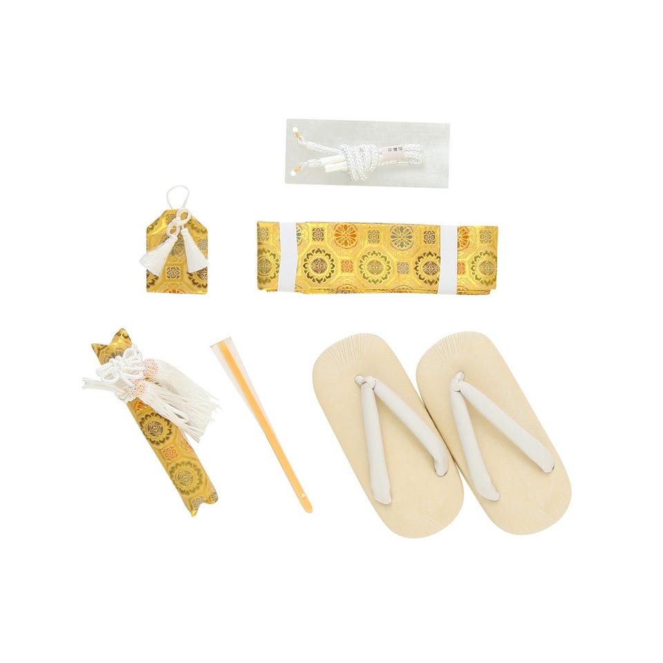 ・袴・羽織・襦袢(半衿つき)・羽織紐・角帯・腰ひも2本・足袋・懐剣・お守り・扇子・雪駄