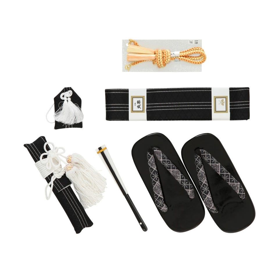 ・袴・羽織・襦袢(半衿つき)・羽織紐・角帯・腰ひも2本・足袋・懐剣・お守り・扇子・雪駄