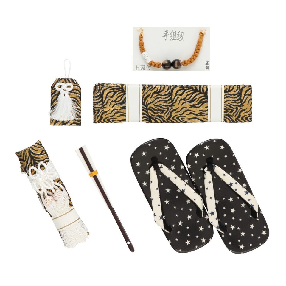 ・袴・羽織・襦袢(半衿つき)・羽織紐・角帯・腰ひも2本・足袋・懐剣・お守り・扇子・雪駄