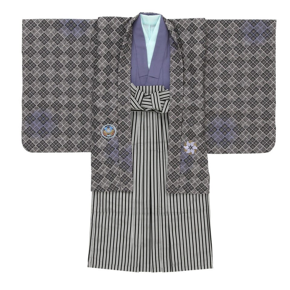 七五三/節句 袴セット 5歳男の子 モダン 紋章 グレー