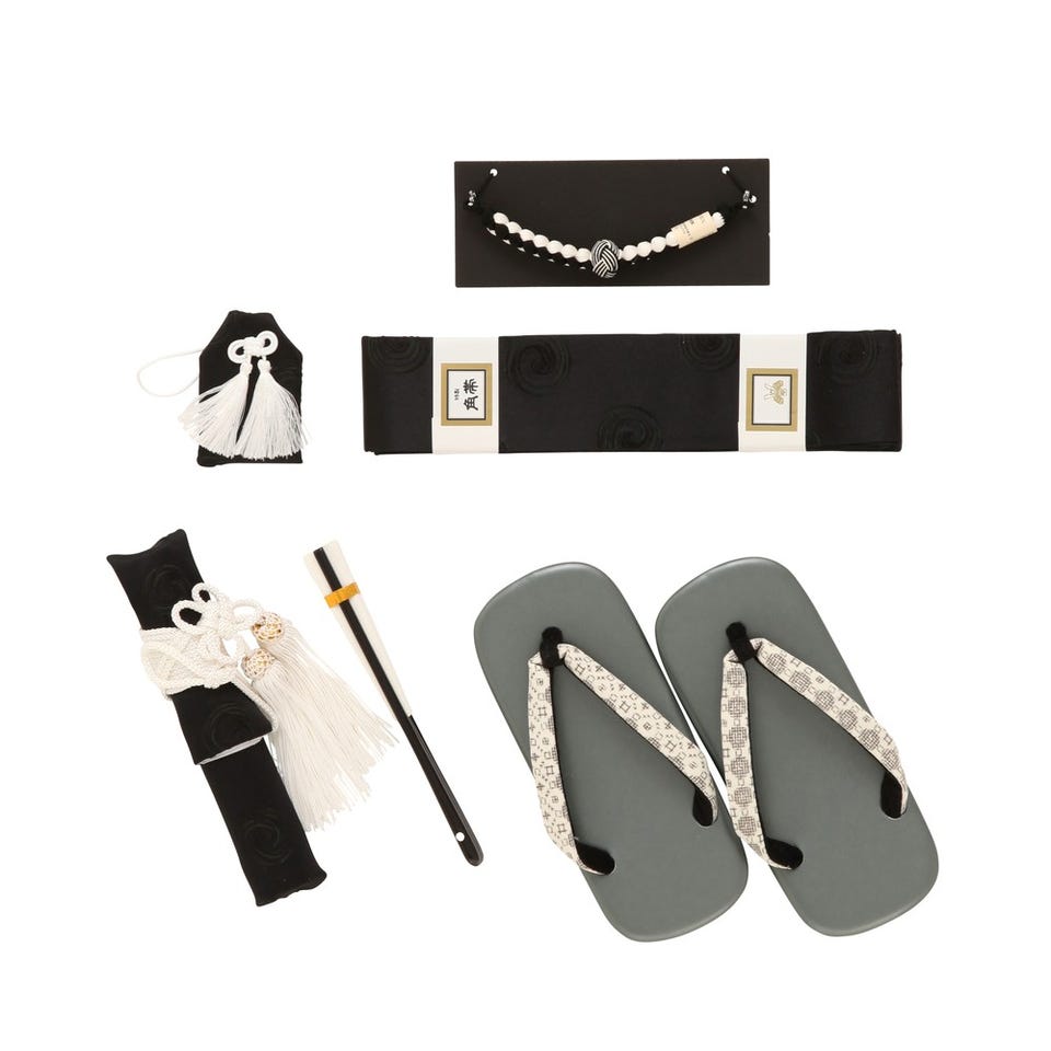 ・袴・羽織・襦袢(半衿つき)・羽織紐・角帯・腰ひも2本・足袋・懐剣・お守り・扇子・雪駄