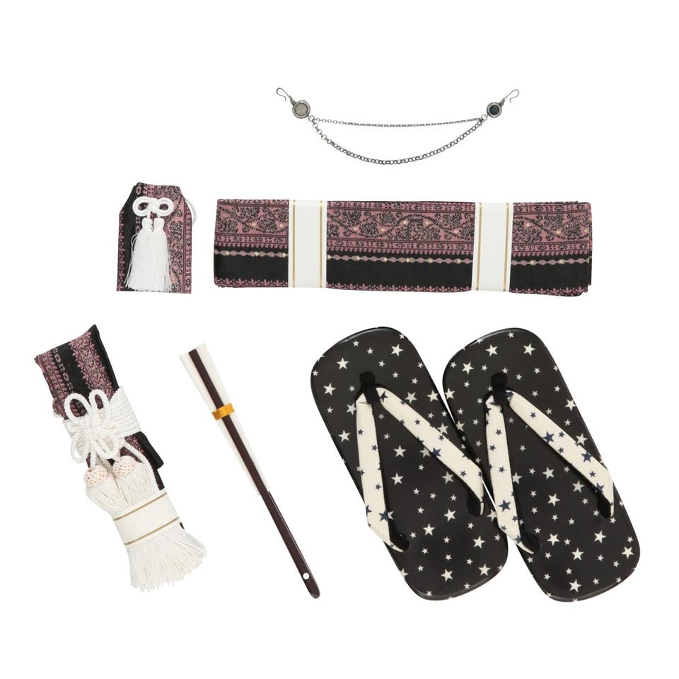 ・袴・羽織・襦袢(半衿つき)・羽織紐・角帯・腰ひも2本・足袋・懐剣・お守り・扇子・雪駄