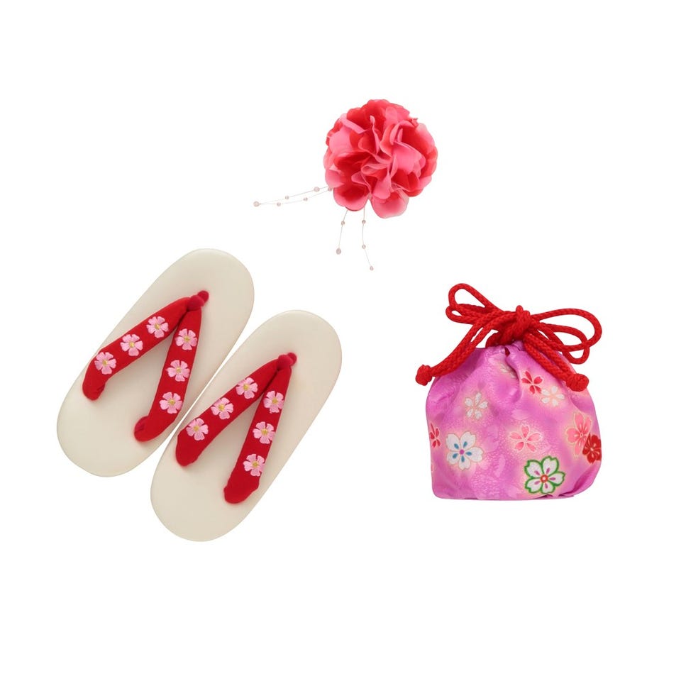 ・着物・長襦袢(半衿つき)・被布コート・兵児帯(しごき)・腰ひも2本・足袋・肌襦袢・髪飾り・巾着・草履