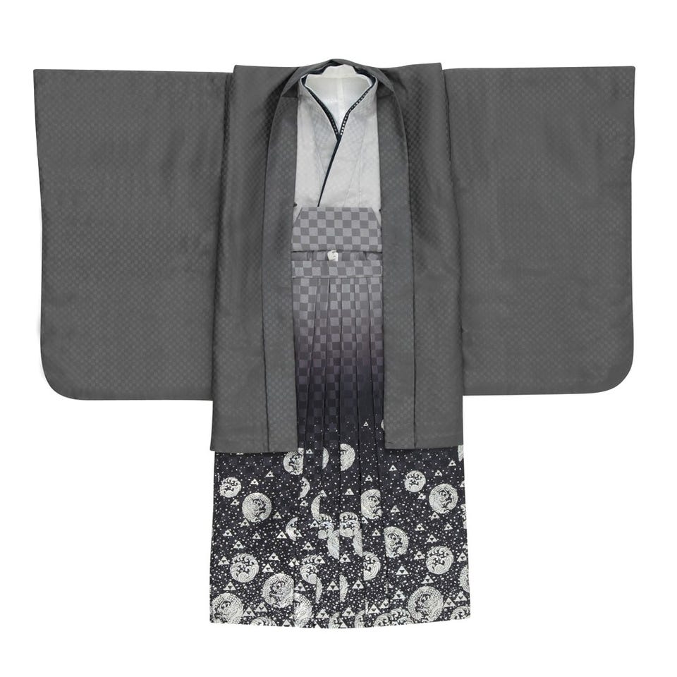 七五三/節句 袴セット 5歳 男の子 市松模様 グレー