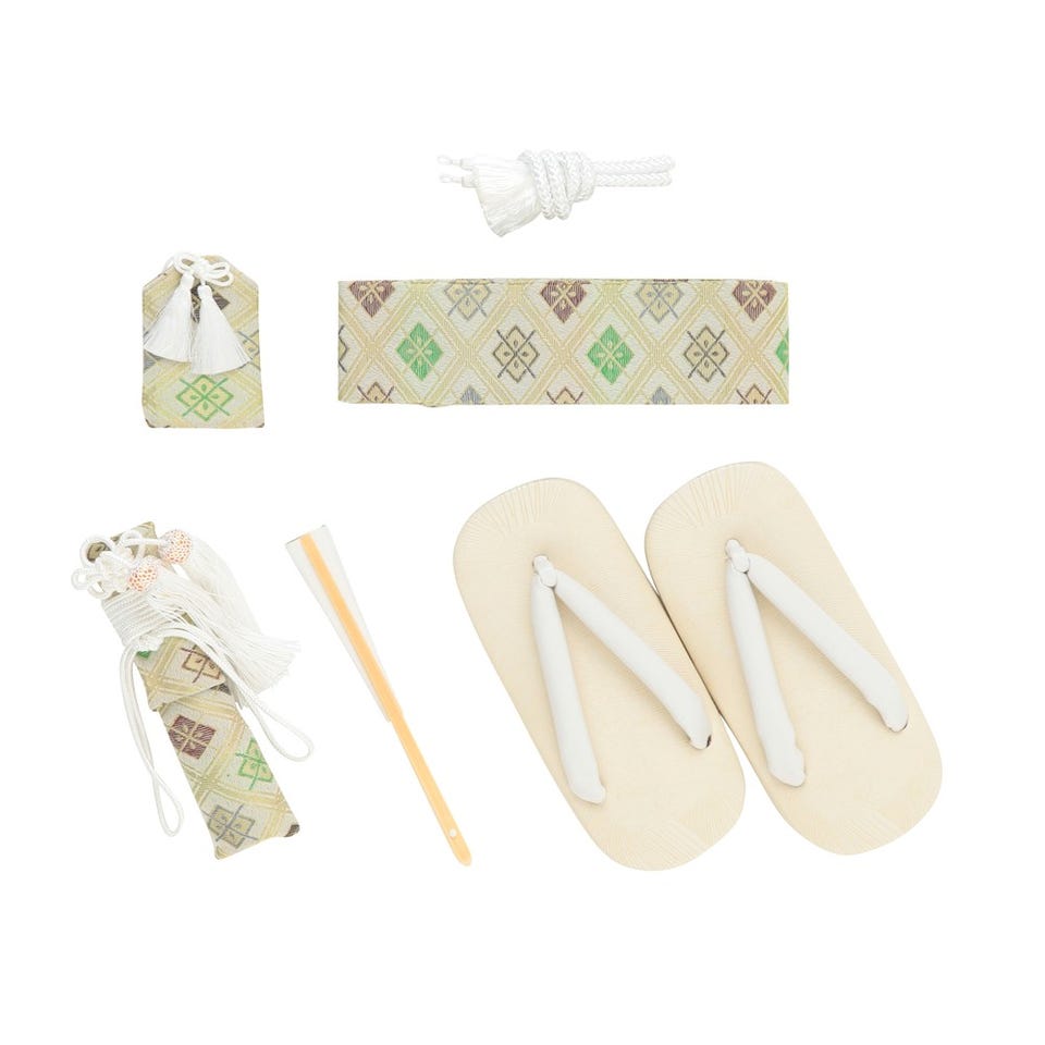 ・袴・羽織・襦袢(半衿つき)・羽織紐・角帯・腰ひも2本・足袋・懐剣・お守り・扇子・雪駄