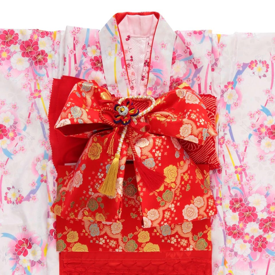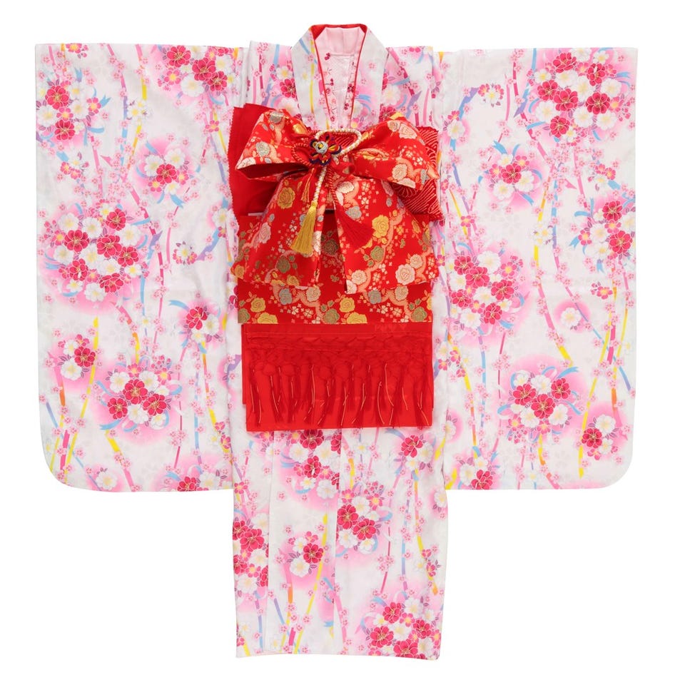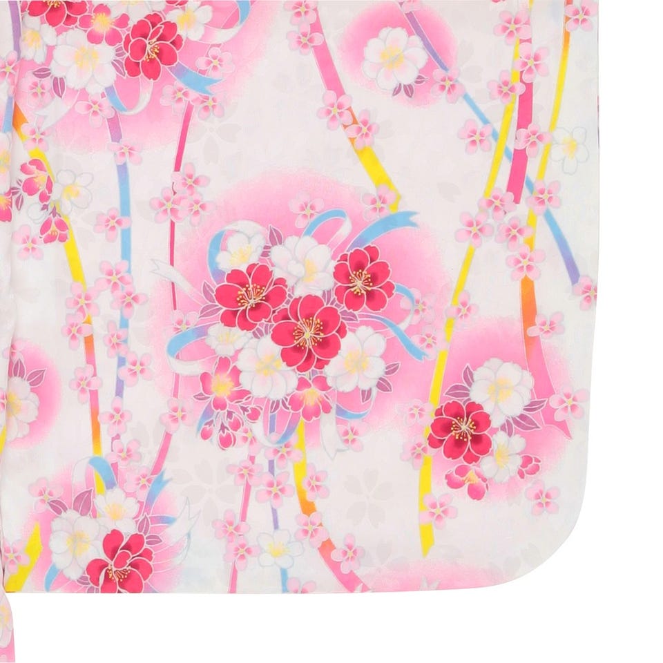 七五三/節句 着物セット 7歳女の子 短冊風 流れ桜 ホワイト