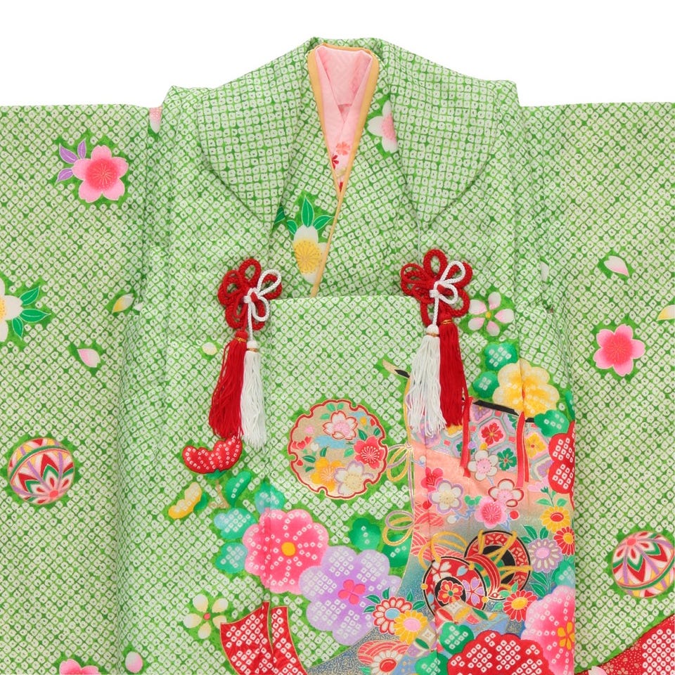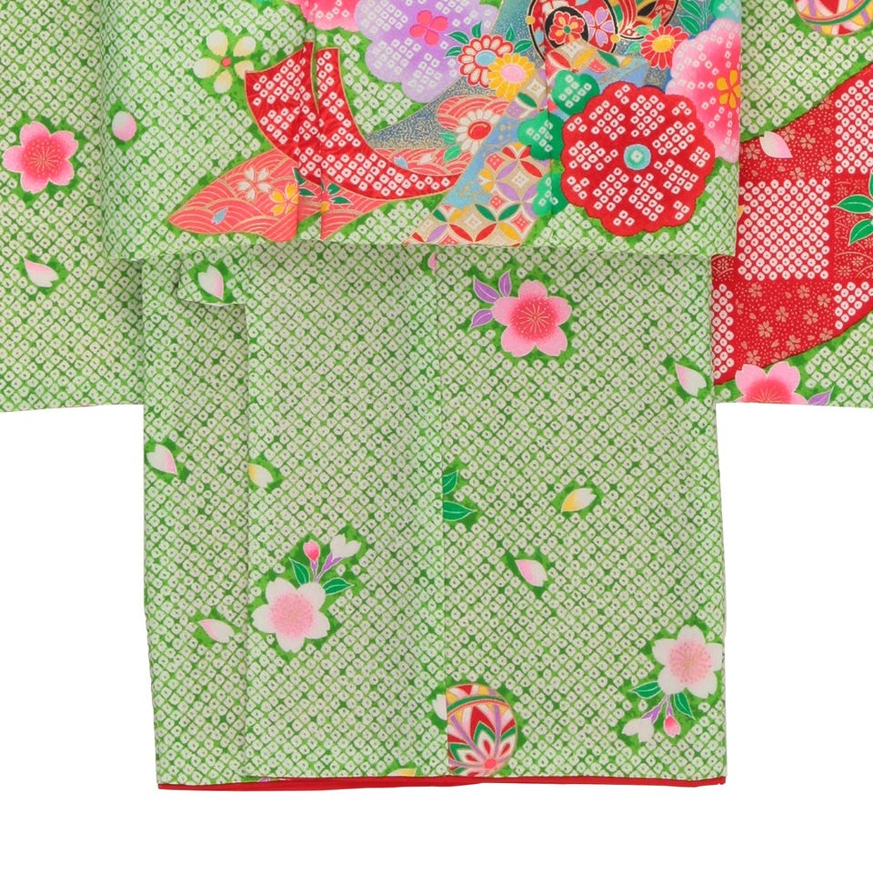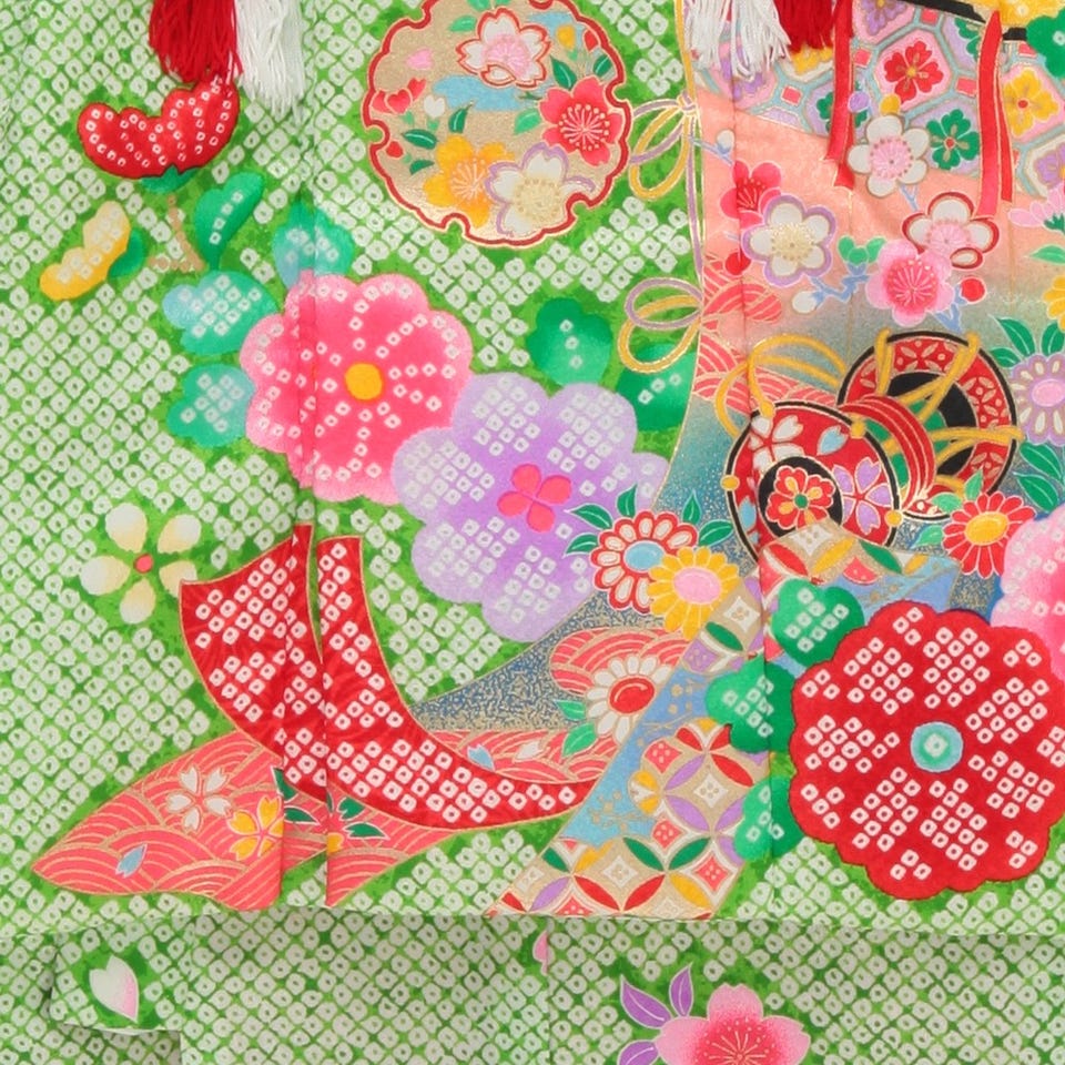 七五三/節句 被布セット 3歳女の子 被布セット 花々 小太鼓 グリーン