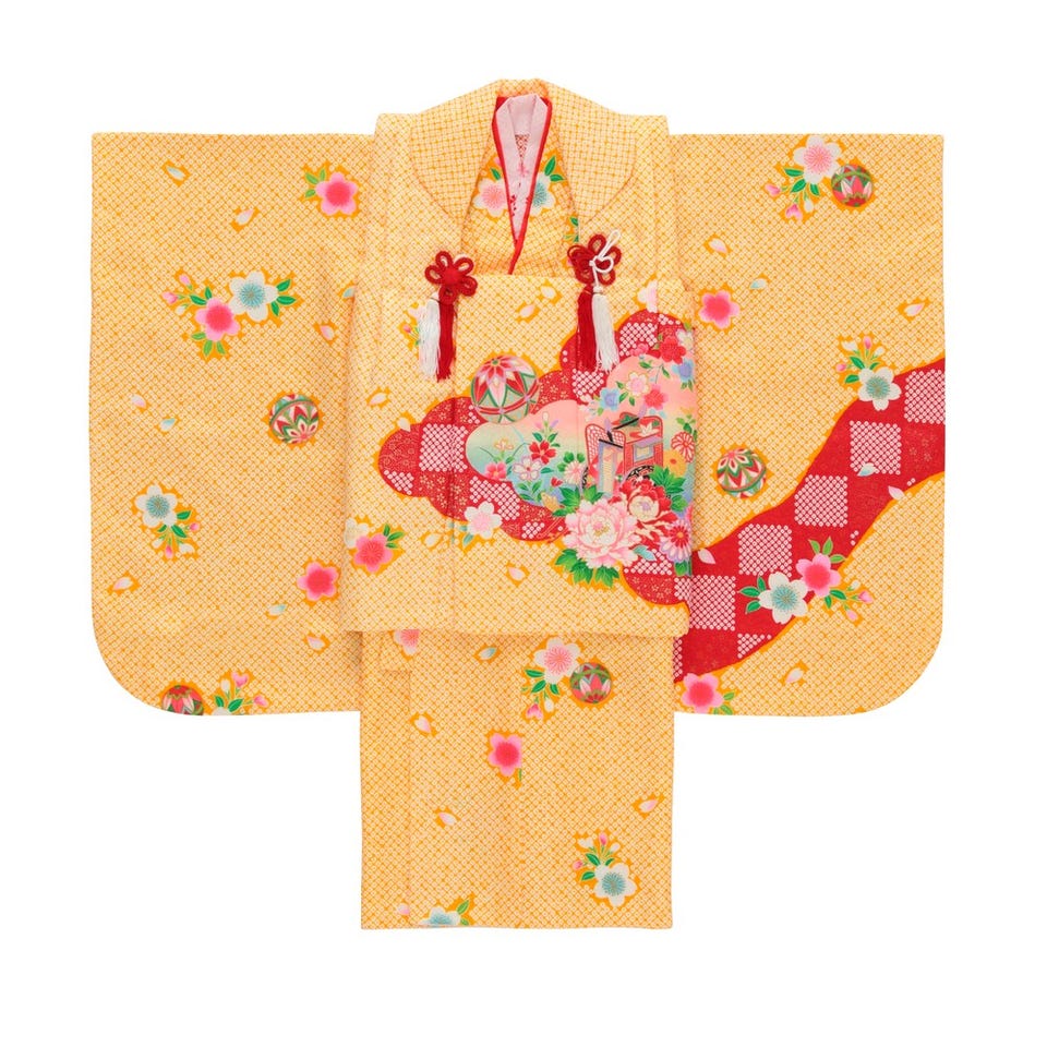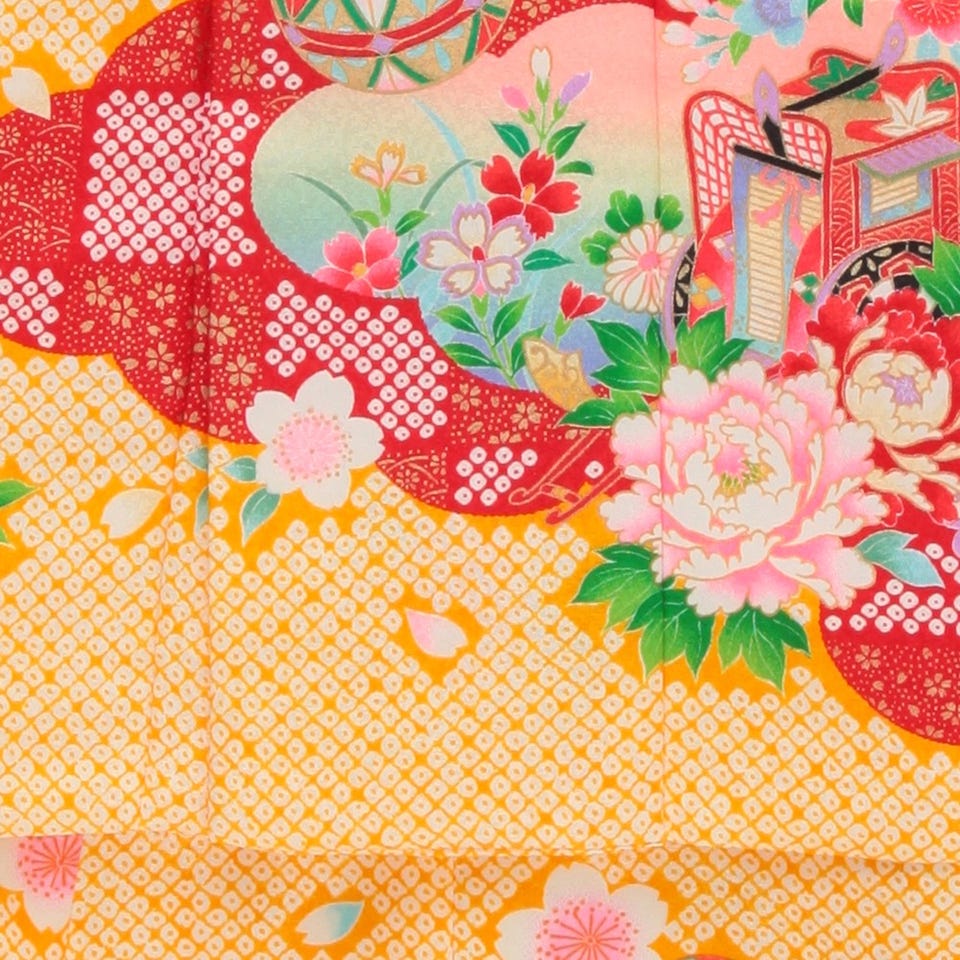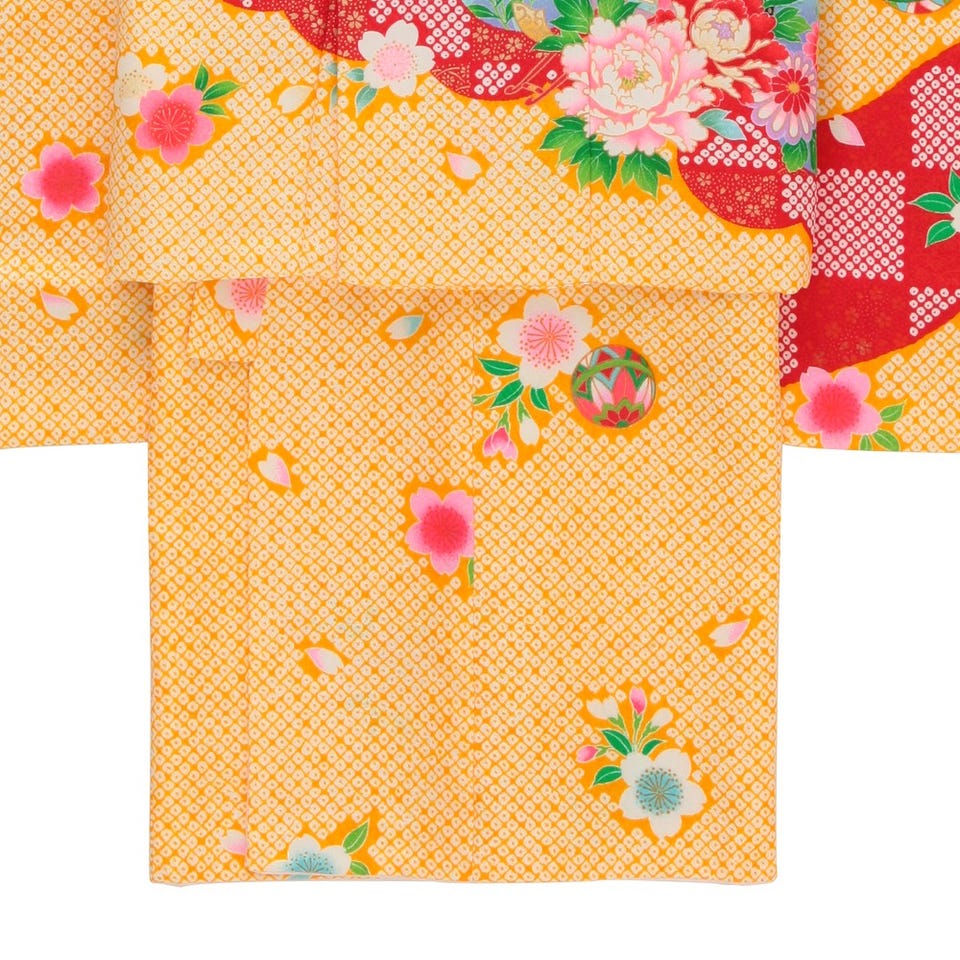 七五三/節句 被布セット 3歳女の子 被布セット 鞠 花々 イエロー