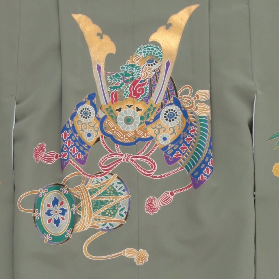 七五三/節句 袴セット 5歳 男の子 小太鼓 兜 グリーン
