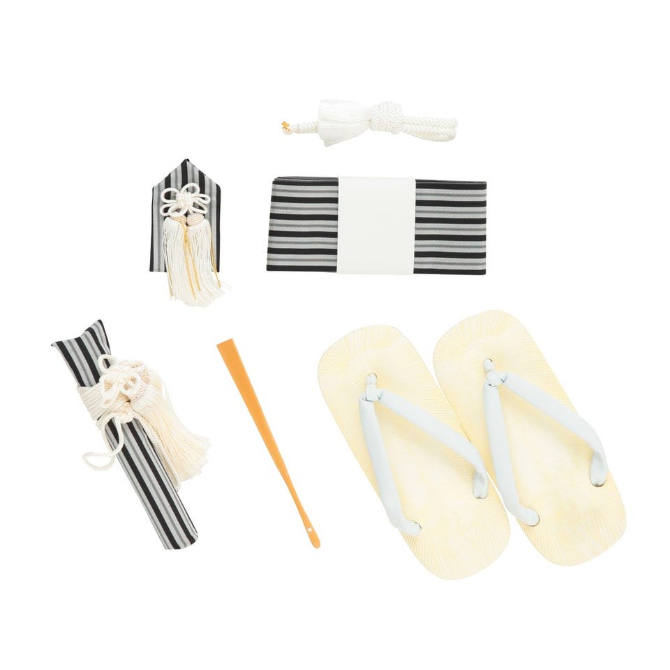 ・袴・羽織・襦袢(半衿つき)・羽織紐・角帯・腰ひも2本・足袋・懐剣・お守り・扇子・雪駄