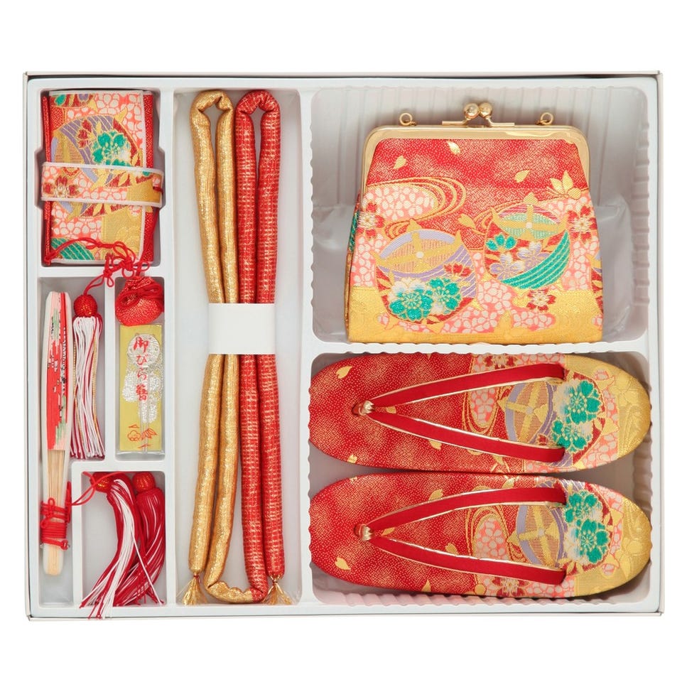 ■着物セット・着物・帯・長襦袢(半衿つき)・帯揚・兵児帯(しごき)・腰ひも4本・伊達締め・足袋・肌襦袢・三重紐・帯板・帯枕・裾除け■箱迫セット・帯締め・御びら簪・バッグ・草履・箱せこ・扇子